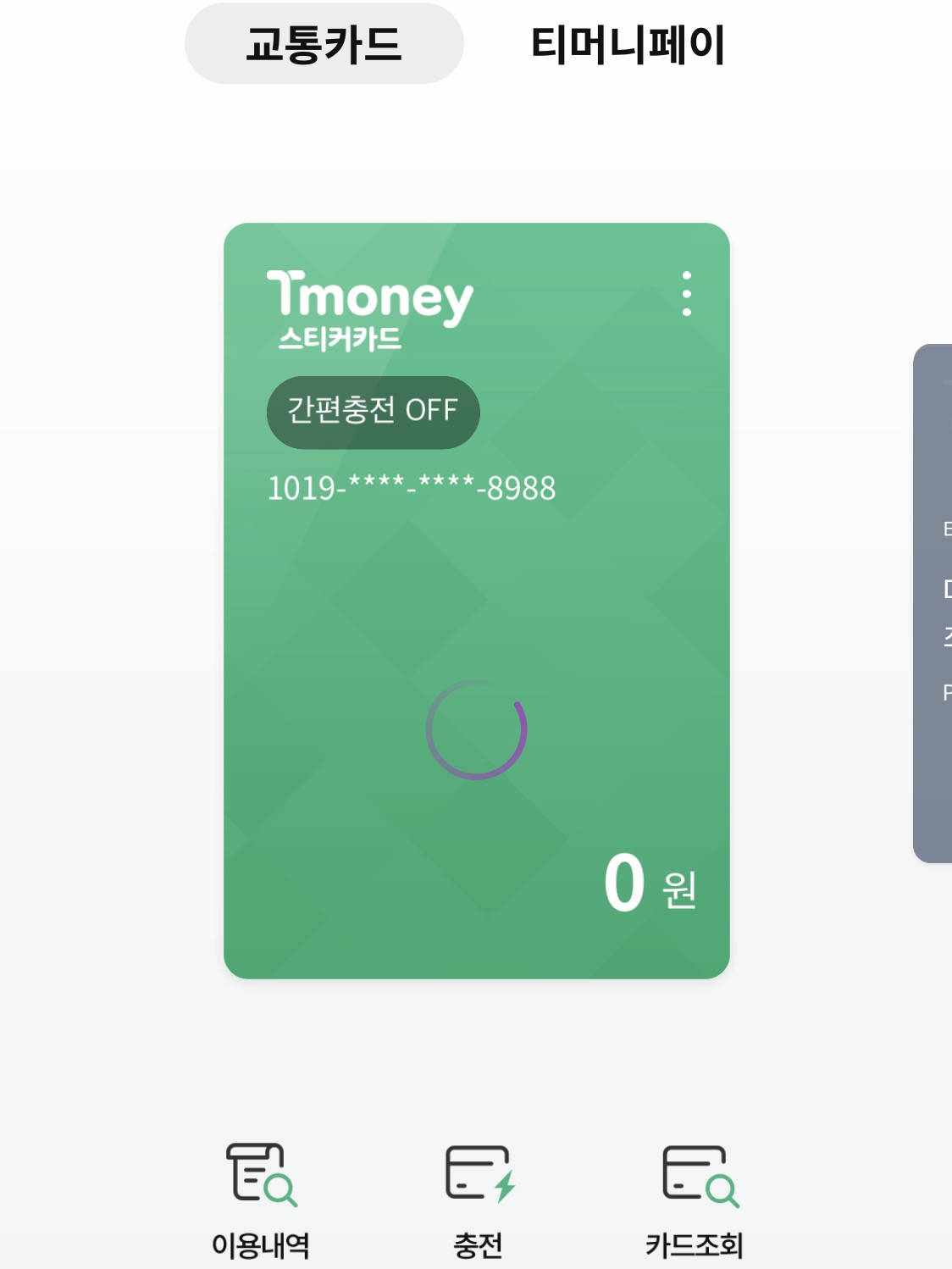 - 티머니 실물카드에 페이머니 옮기기