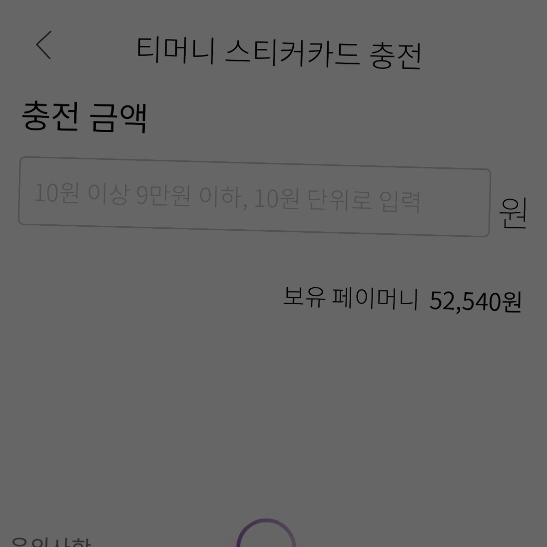 가져다대면 티머니 카드에 얼마를 충전할 건지, 충전 금액을 입력할 수 있습니다.
