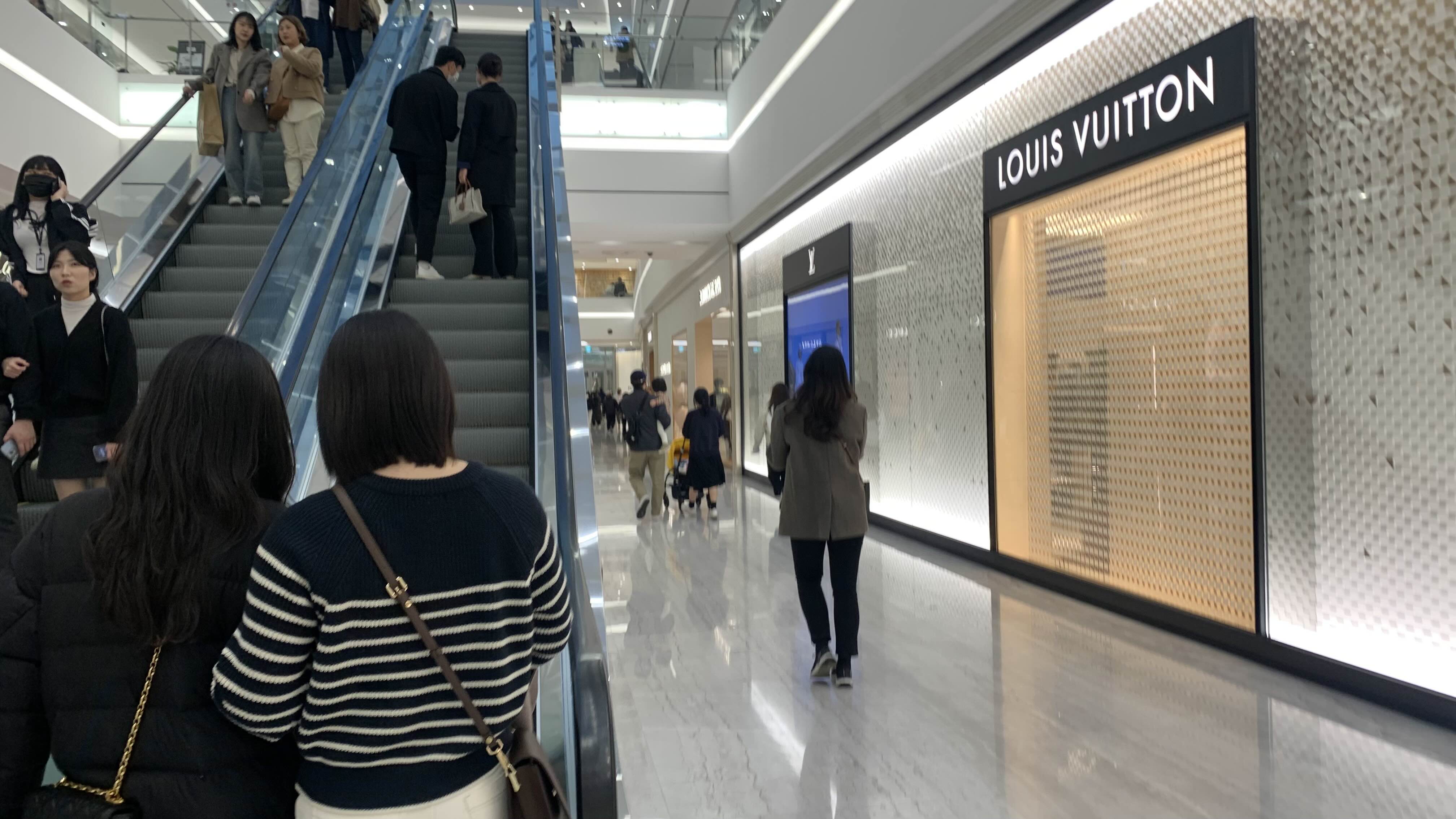 에스컬레이터에서 내리면, 바로 루이비통이 보이고