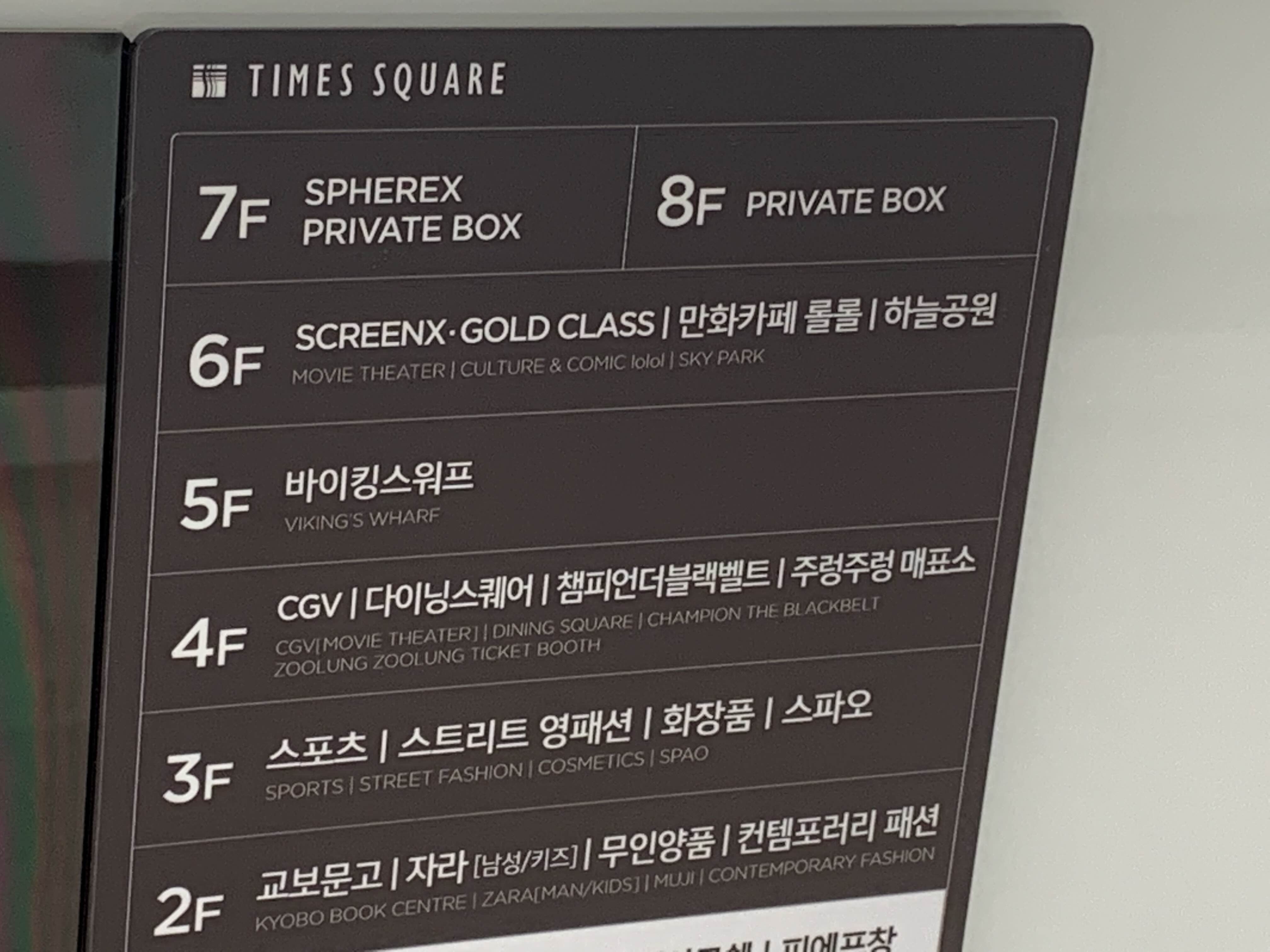 ***지상에서 타임스퀘어 들어온다면, gs25 옆 GATE 5 엘리베이터 타면 바로 CGV에서 내린다는 것만 기억하면 됩니다.
