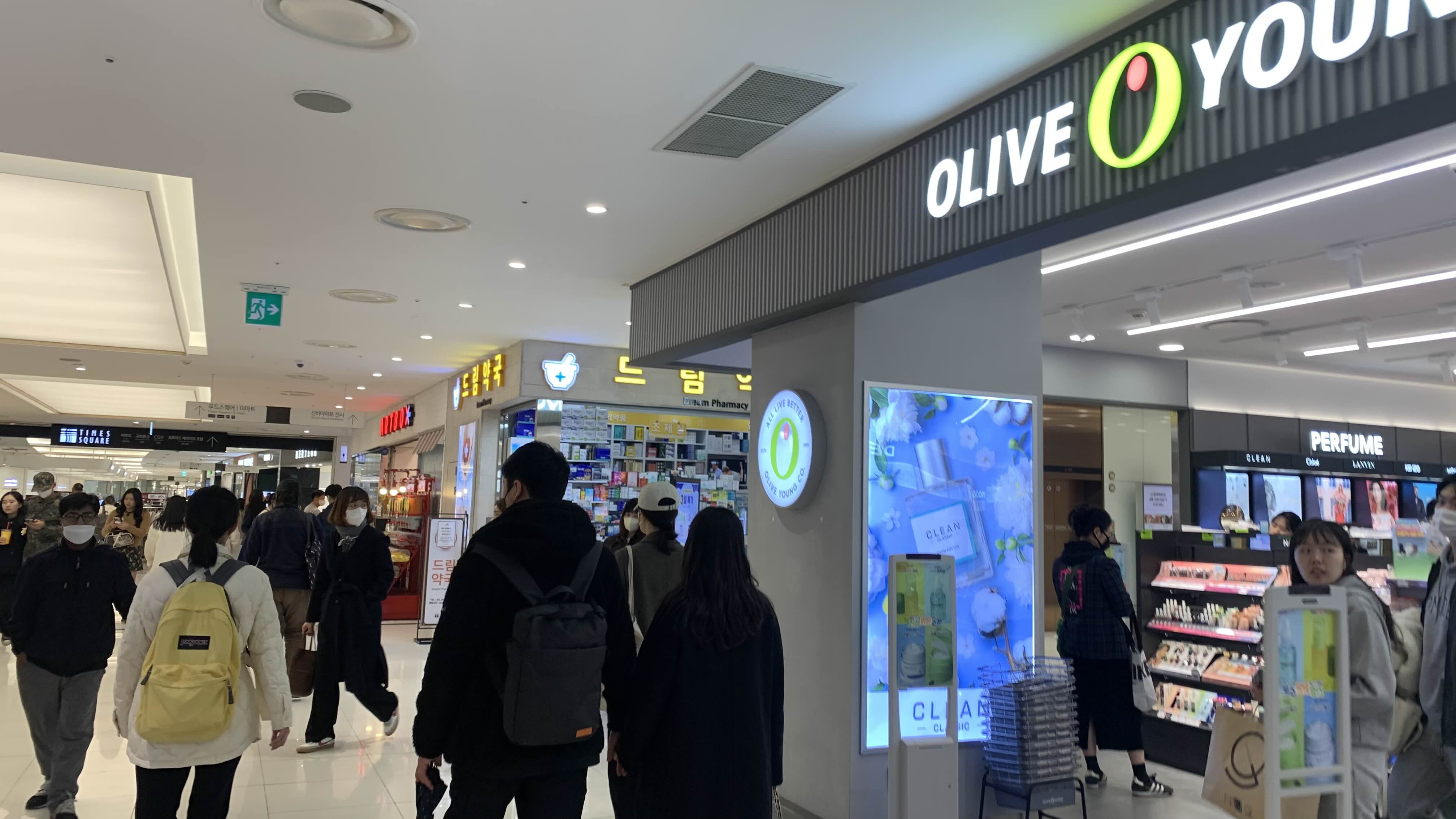 스타벅스, 올리브영, 아트박스 차례대로 지나면,