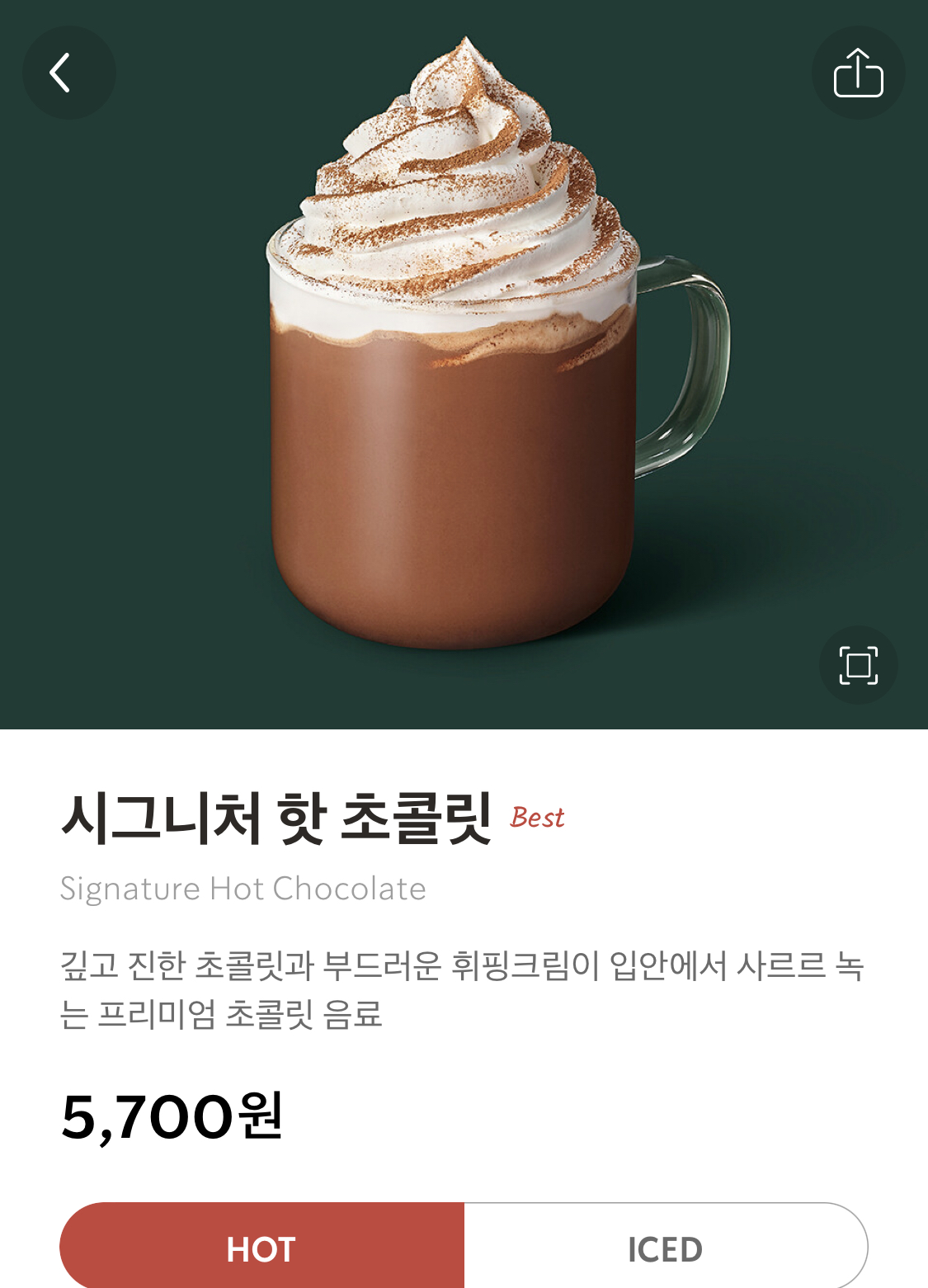 ⭐️ 시그니처 핫 초콜릿