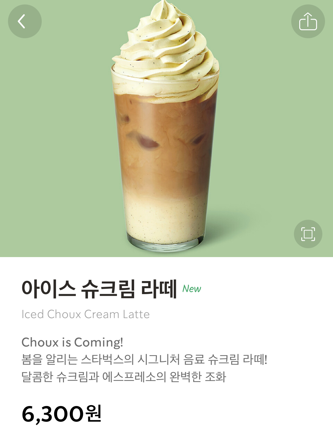 아이스 슈크림 라떼 (가격 6,300원)