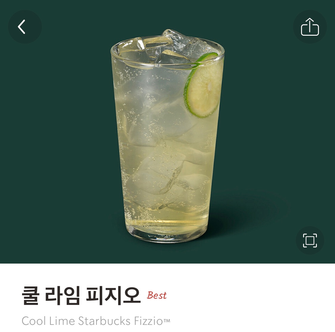라임 베이스의 청량감있는 스파클링 음료가 먹고 싶다면 이 메뉴 추천한다 (참고로 카페인 첨가된 탄산음료다)