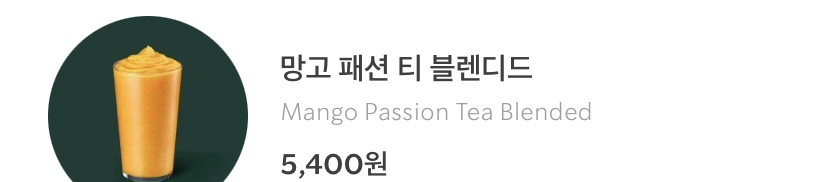 망고 패션 프루트 주스와 패션 탱고티가 상큼하게 어우러진 과일 블렌디드.. 라고는 하는데,