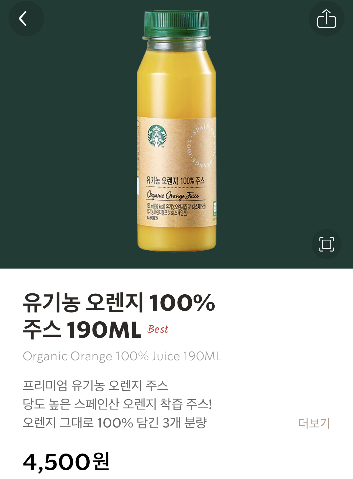 스타벅스 병음료 유기농 오렌지 주스