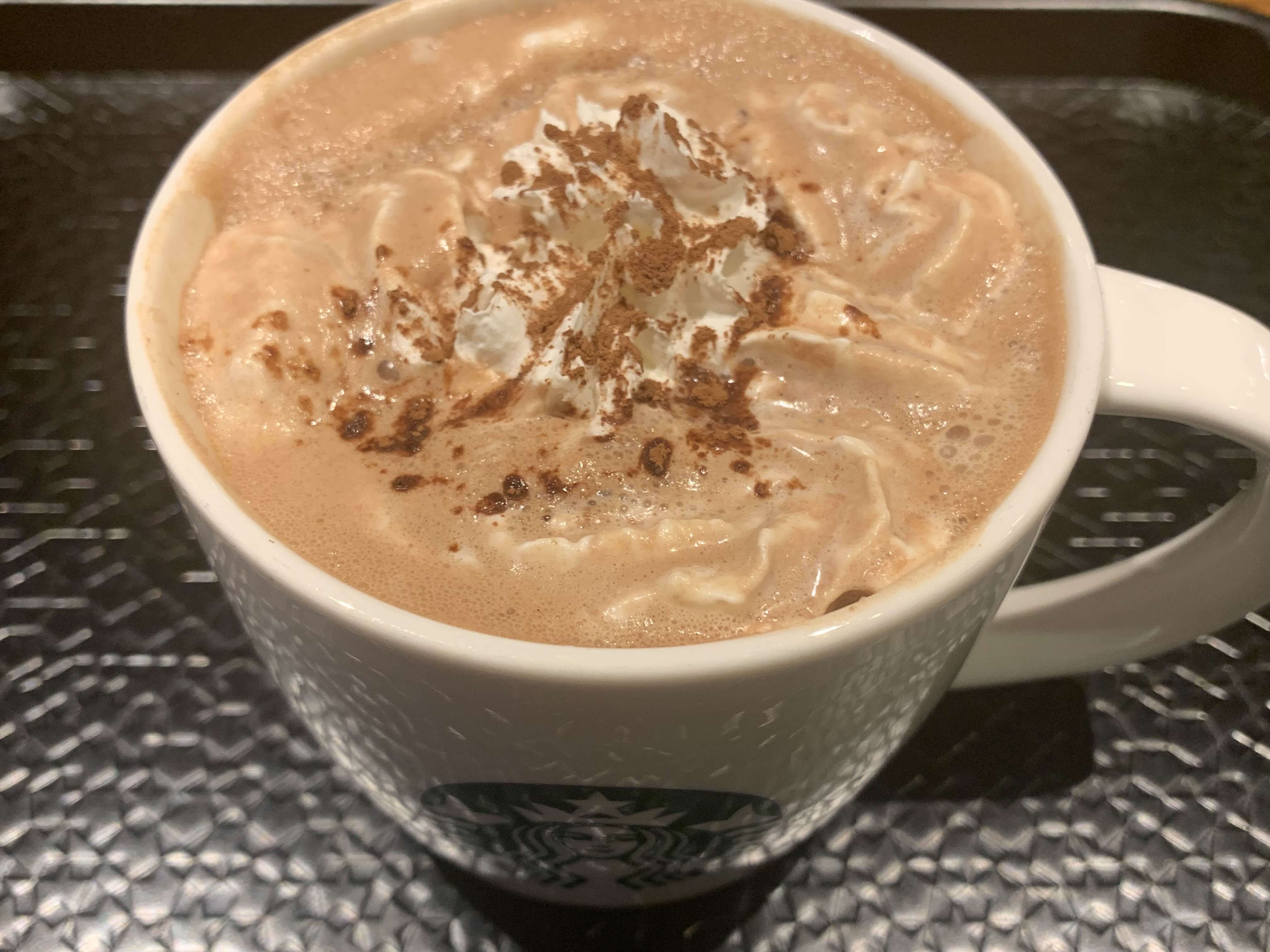 겨울에 자주 먹는 스벅 핫초코. 기본 휘핑 올라가는데 에스프레소 휘핑으로 바꿔서 먹고 있다.