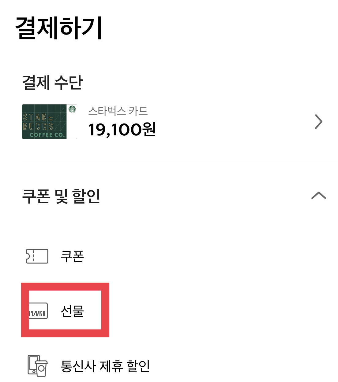 3. 결제페이지에서 쿠폰 및 할인-선물 클릭