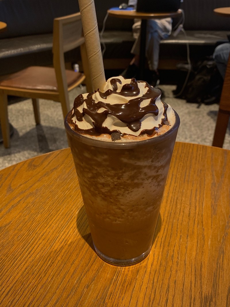 밤에 먹은 거라 디카페인으로 했고, 달게 먹는 건 선호하지 않아서 초콜릿 드리즐 적게 했는데 딱 좋긴 했지만 달달한 게 당길 땐 초콜릿 드리즐 보통으로 하고 카라멜 시럽이나 드리즐 추가해서 먹을 것 같다.