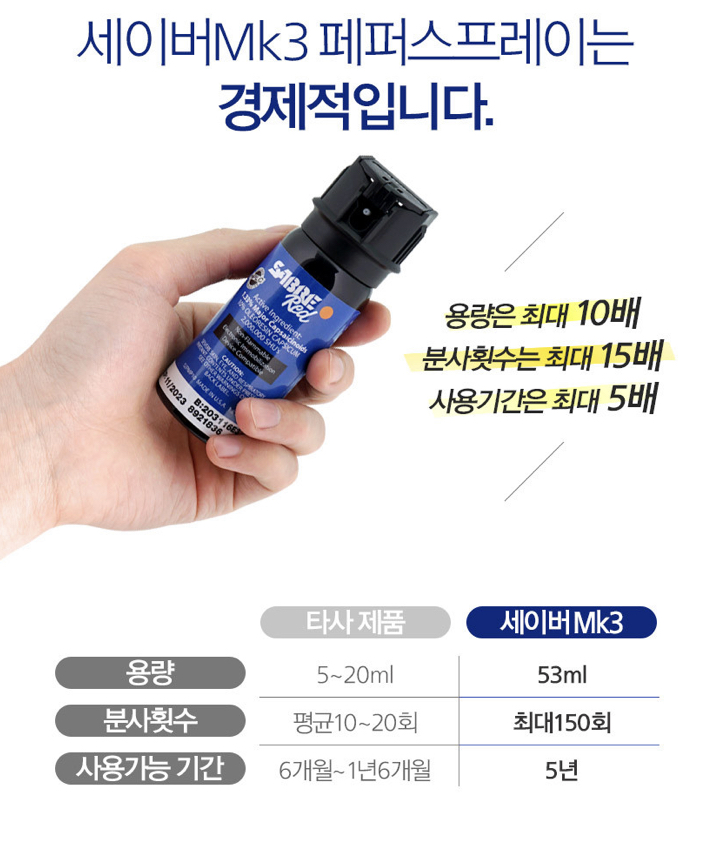 호신용 페퍼 스프레이 사기로 결심했다면 이왕 사는 거, 비록 만원대로 저렴하긴 하지만 성능은 좋지 않은 립스틱 용기의 스프레이보단 미국 경찰에 의해 개발되어 미국 국토안보국의 검증까지 받은 효과 확실한 세이버 MK3 페퍼스프레이를 구매하는 게 훨씬 낫습니다.