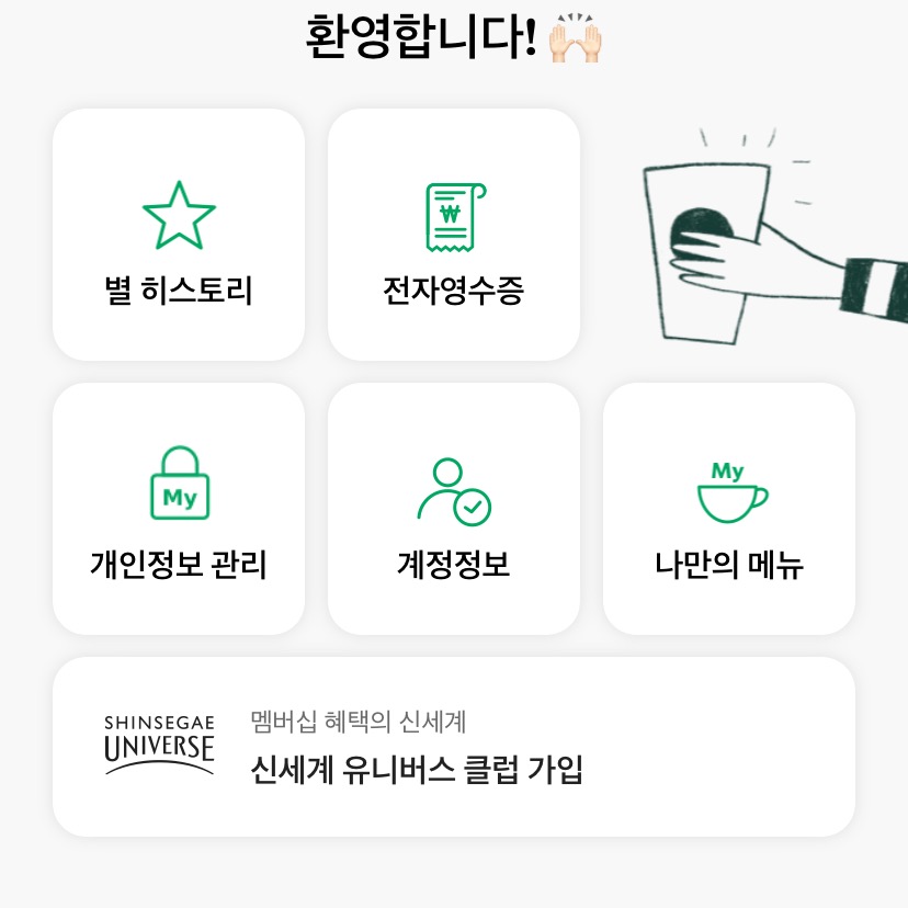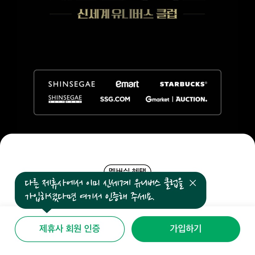 스타벅스 어플 접속 > 신세계 유니버스 클럽 가입 클릭