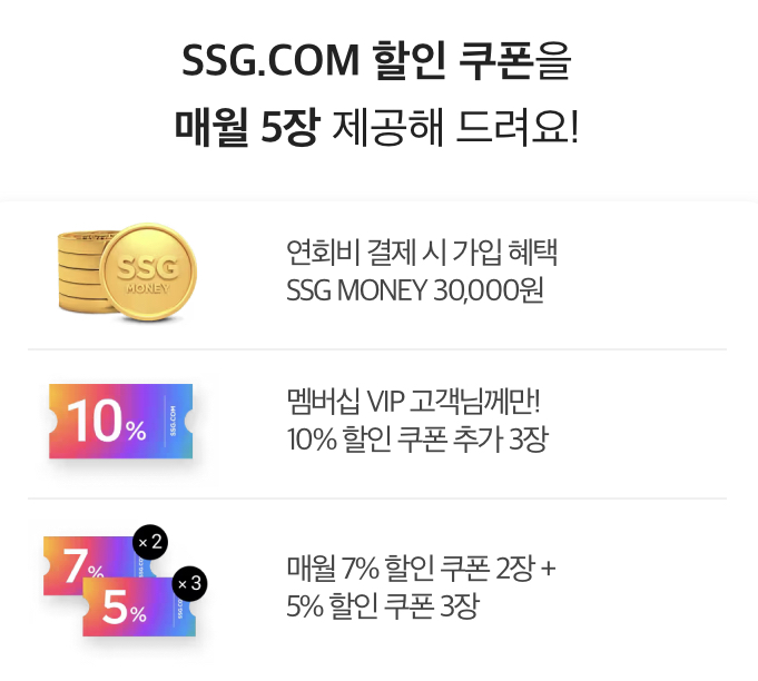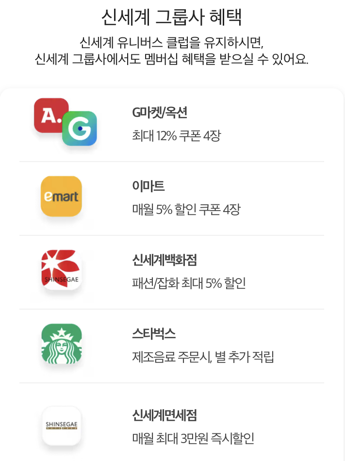쓱배송뿐만 아니라 지마켓, 옥션, 이마트, 신세계백화점, 신세계면세점 할인쿠폰에 스타벅스 추가 별 적립까지. 같은 계열사에선 다 혜택을 누릴 수 있다.