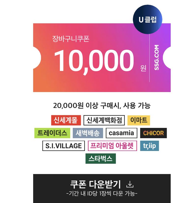 유니버스 클럽 가입시 매달 할인쿠폰이 여러장 지급된다. 쿠폰 써서 몇 천원 할인받고 구매할 수 있어서 쏠쏠하다.