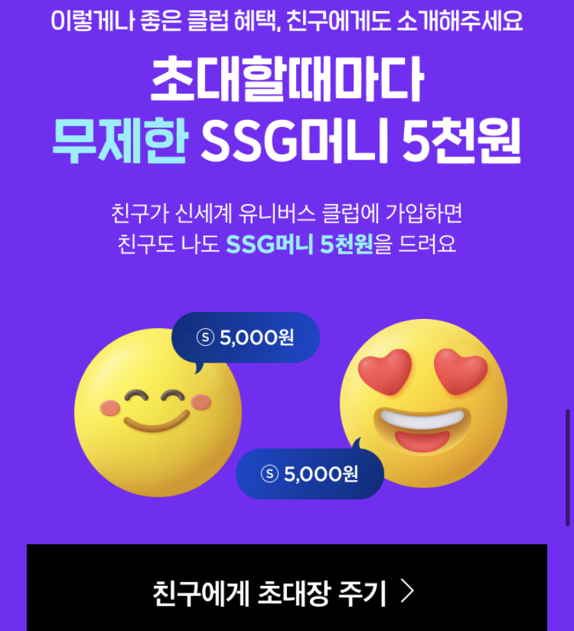✔️친구초대 링크로 가입 후 5,000원 쓱머니 적립