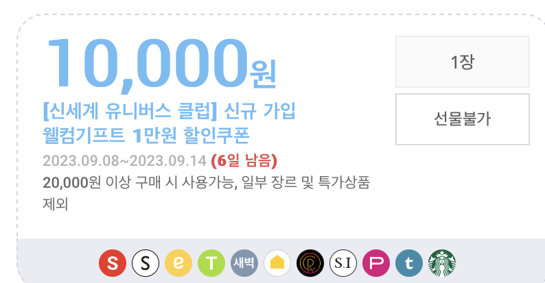 ✔️ 웰컴기프트쿠폰 10,000원 할인쿠폰 다운 완료