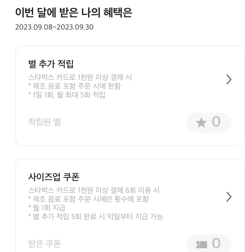 내가 받은 혜택은 스타벅스 어플에서 체크 가능.