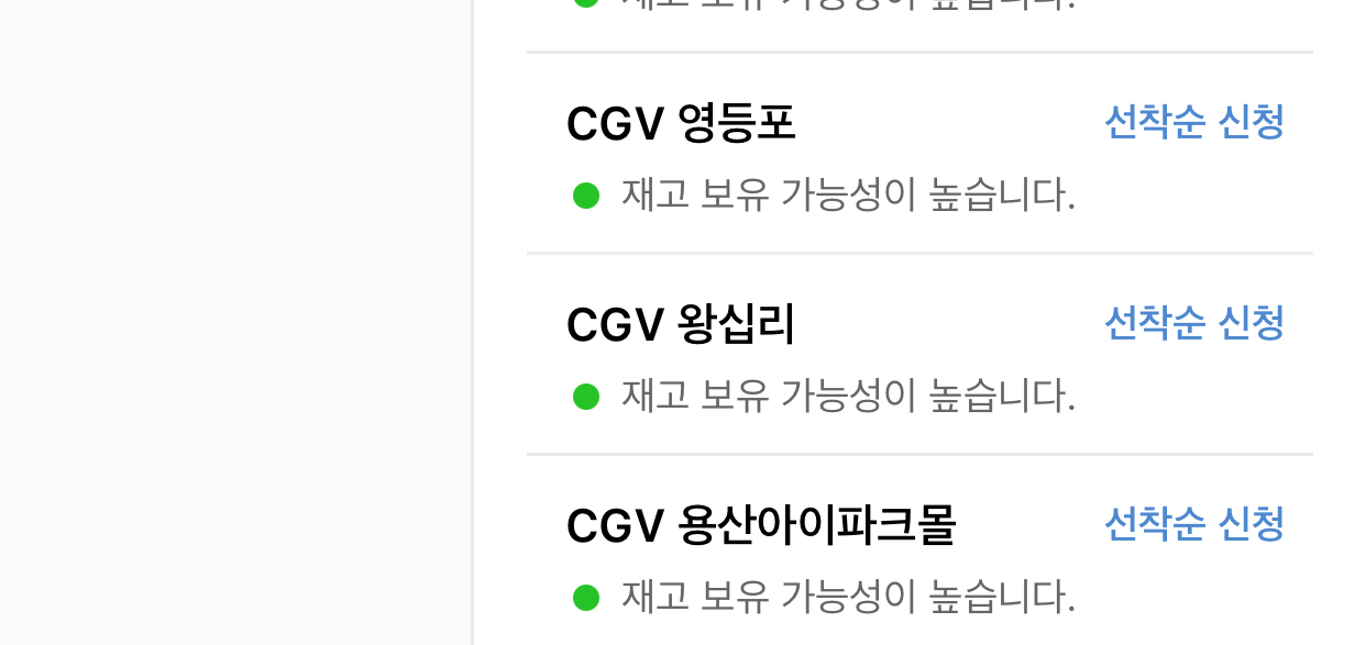 용산아이파크몰, 영등포, 왕십리 중 해당되는 영화관을 클릭해줍니다.