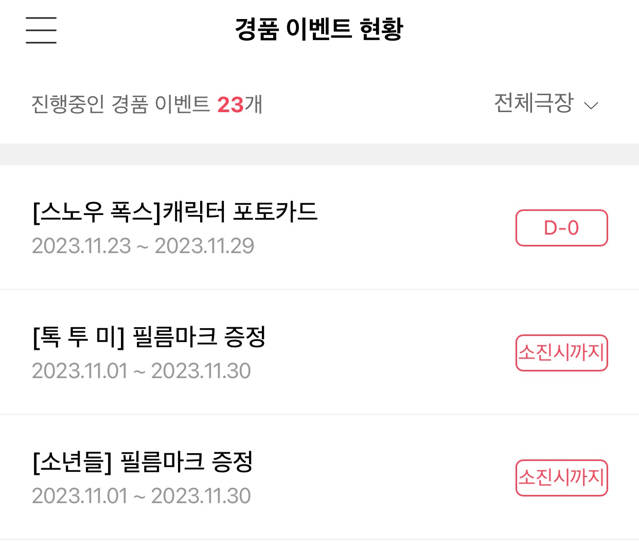 23년 11월 29일 개봉작부터 CGV 용산아이파크몰, 영등포, 왕십리, 세 지점은 특전 받는 법이 바뀌었습니다.