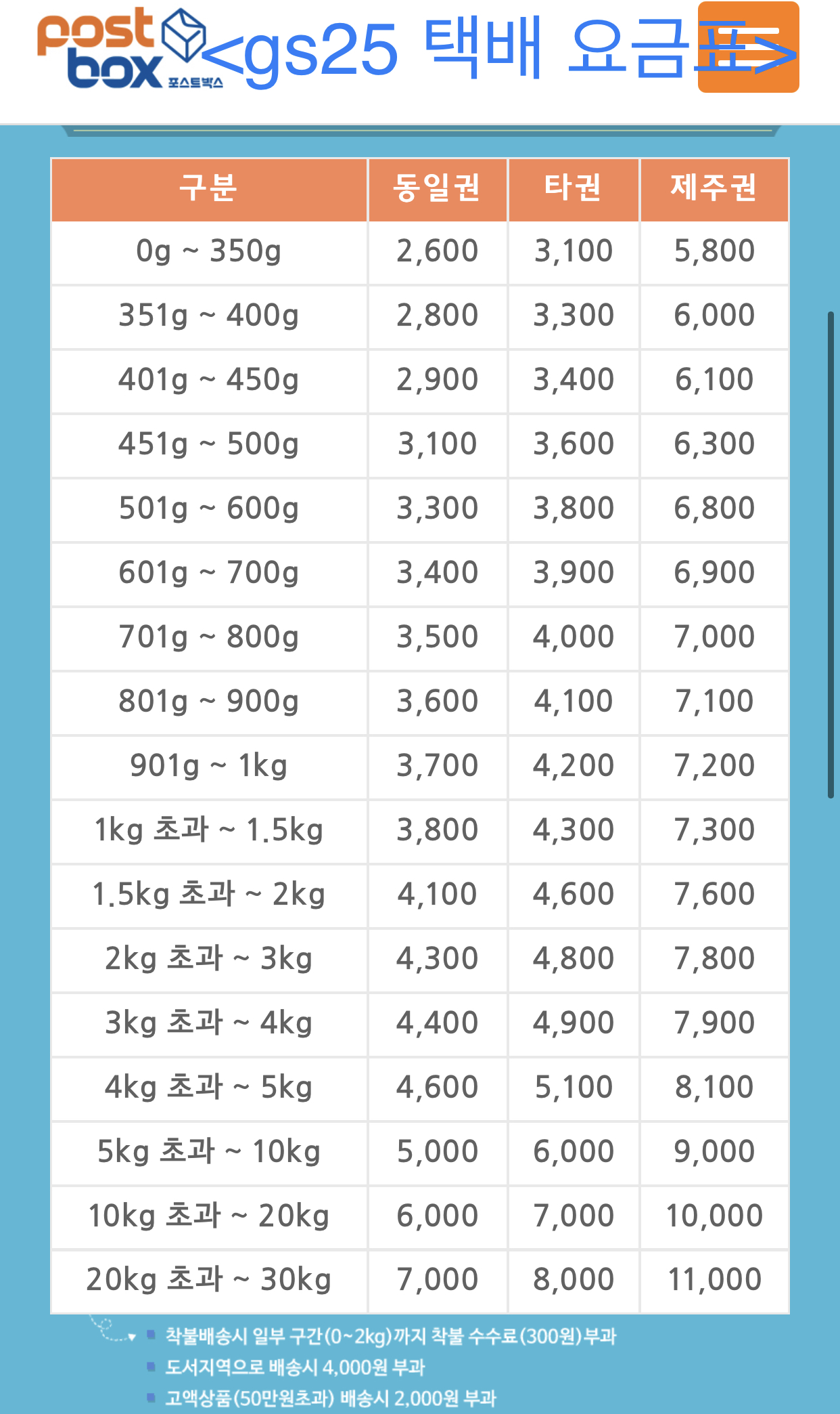 <지에스 편의점택배 가격>