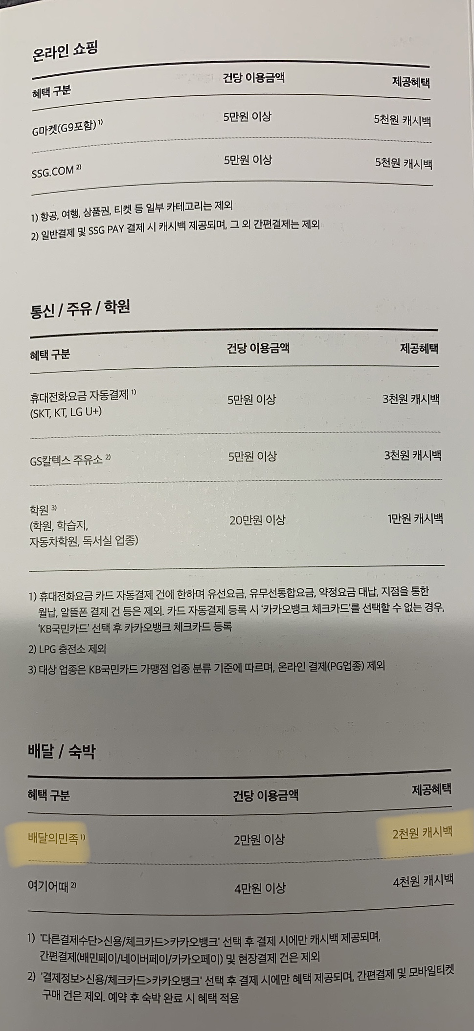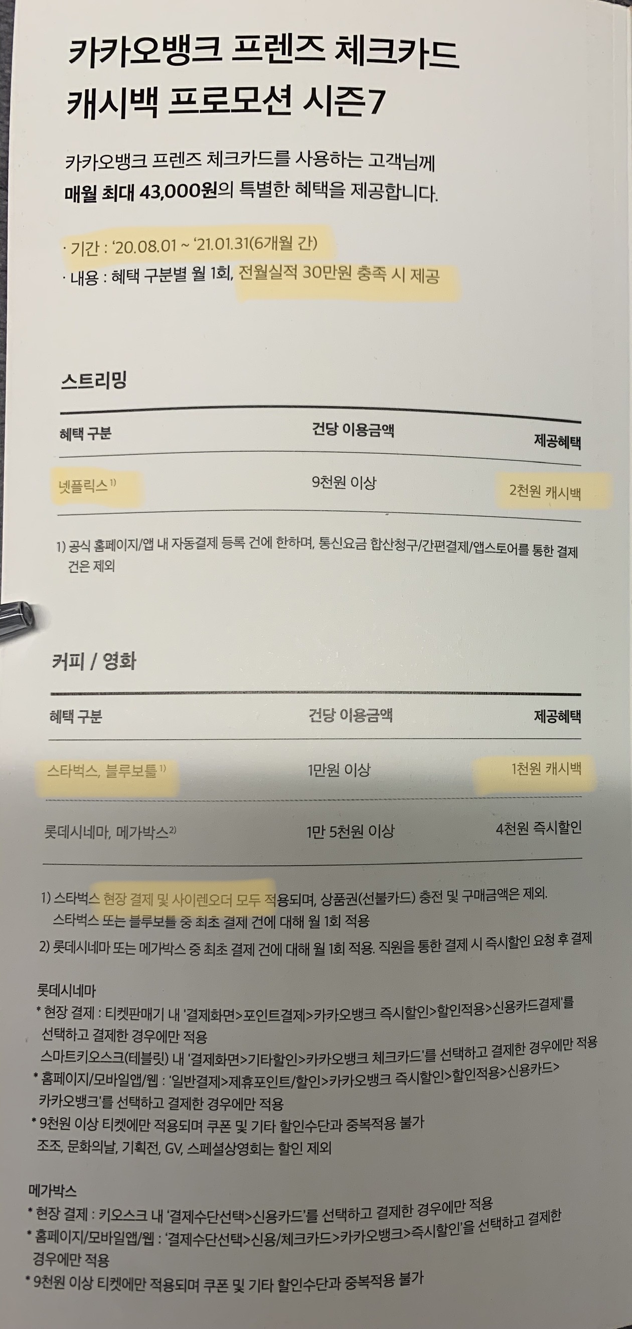 최초 발급 후 사용등록일로부터 다음달 말일까지는 이용실적(30만원 이상 사용)과 관계없이 혜택 제공