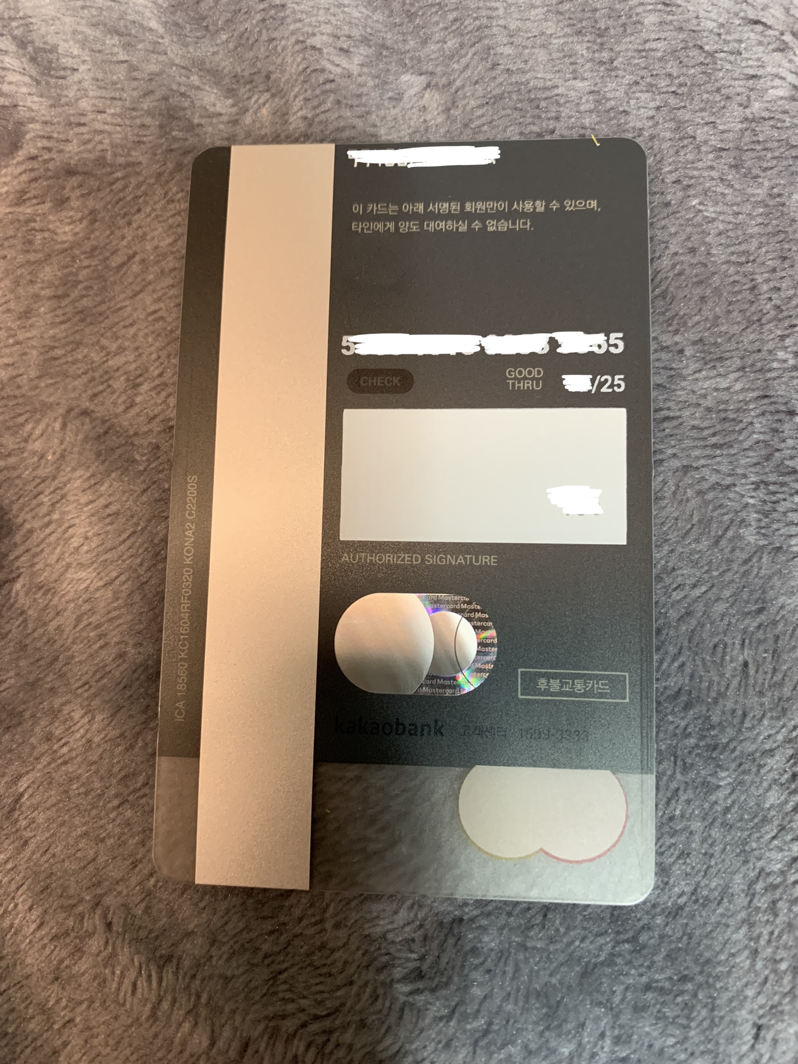 • 후불교통카드 기능있는 심플한 디자인의 검정 체크카드.