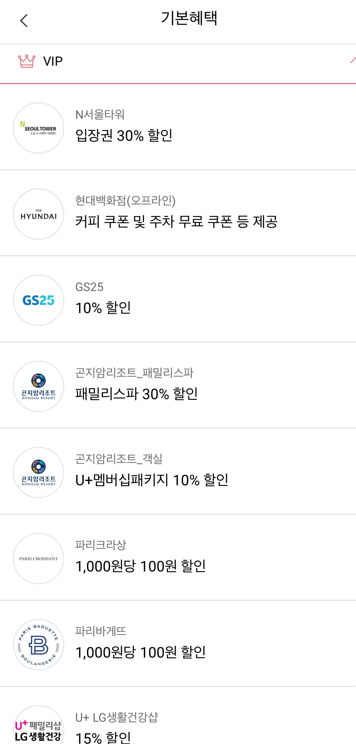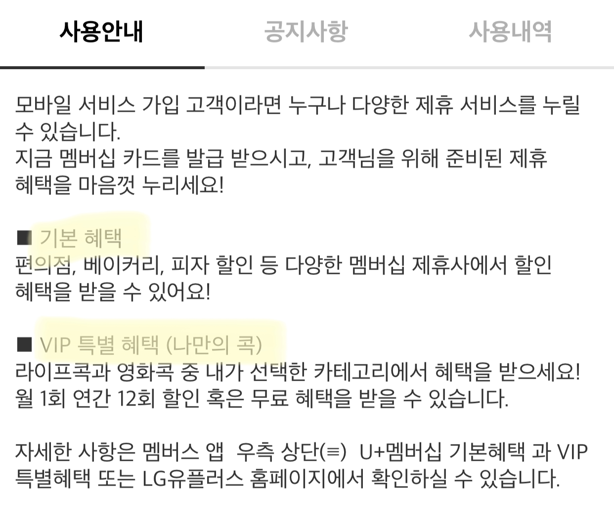아래서부터는 브이아이피든 일반 고객이든 모두가 사용할 수 있는 기본혜택이다.