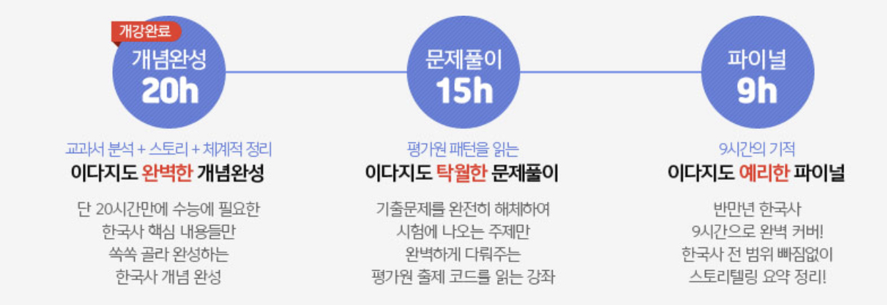 시간적 여유 있는 수능 수험생은 당연히, 무조건, 이다지T 대표 강의(20시간의 기적 :: 스토리텔링/ 상세한 흐름 설명 및 ‘A to Z’ 완벽 개념 정리/ 사료 정리/ 기출문제 풀이) 듣는 걸 추천한다.
