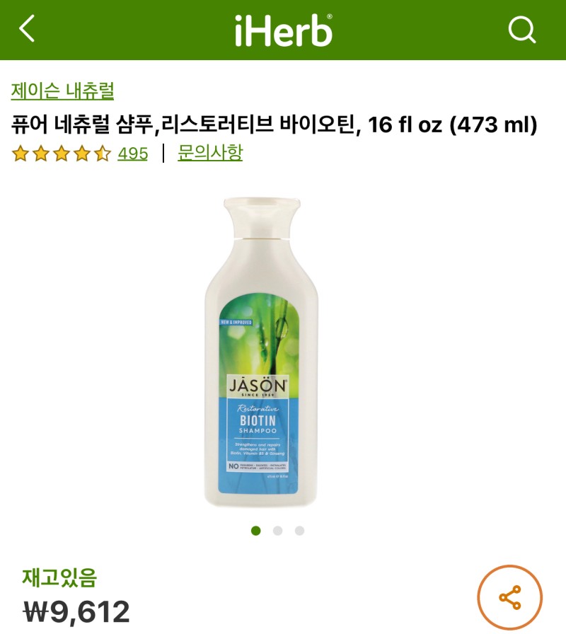 6. 아이허브 제이슨 퓨어 내추럴 비오틴 샴푸