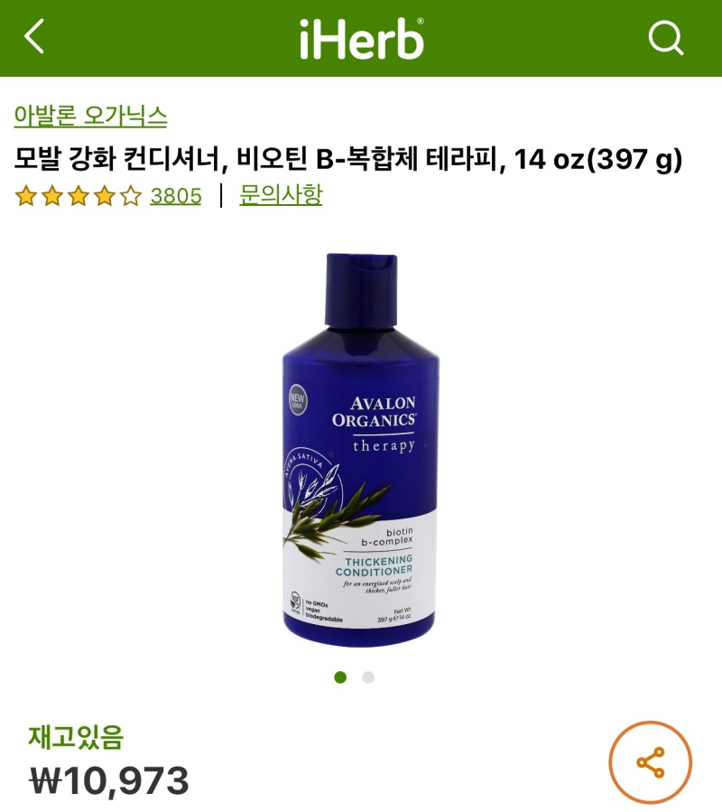 7. 아이허브 아발론 오가닉스 비오틴 B-복합체 테라피 샴푸