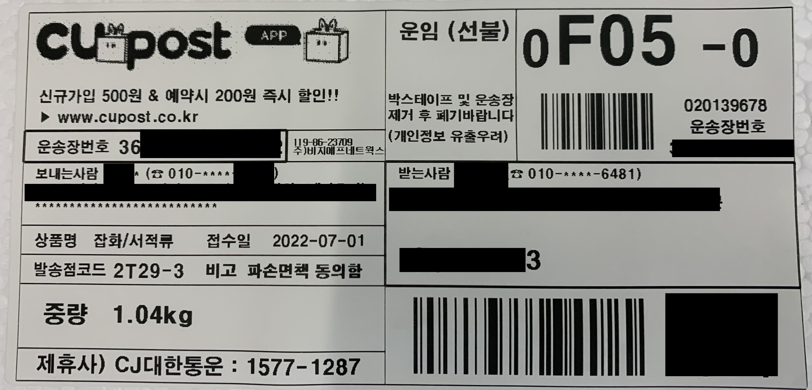 <우체국택배 편의점택배 가격 정리> 및 우편, 등기, 택배 보낼 때 <‘보내는 사람’ 주소 어디까지 작성해야 하는지> 관련한 포스팅 - https://nuut.tistory.com/m/34