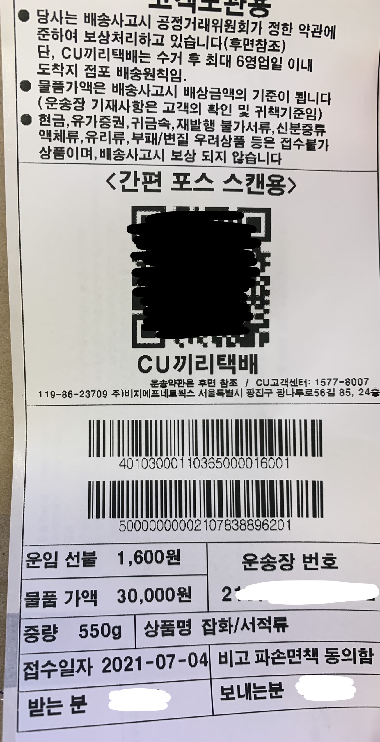 일단 택배 분실되면 씨유 고객센터에 전화해서 분실됐다고 말하면 알아서 처리해준다. 고객보관용 영수증 이런 거 없어도 보상해준다.