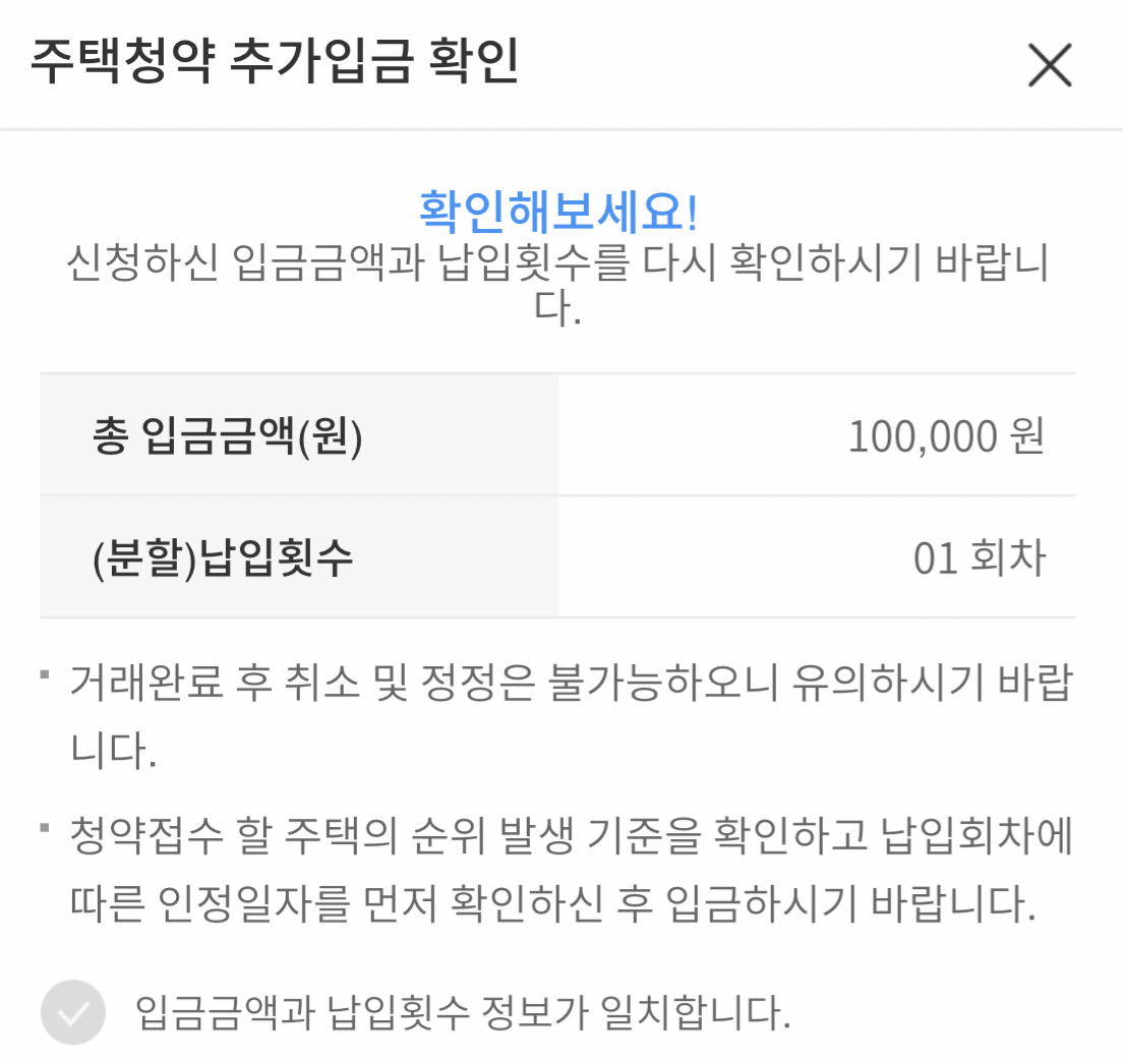 나는 매달 한번에 십만원씩 청약 넣는 중이므로,