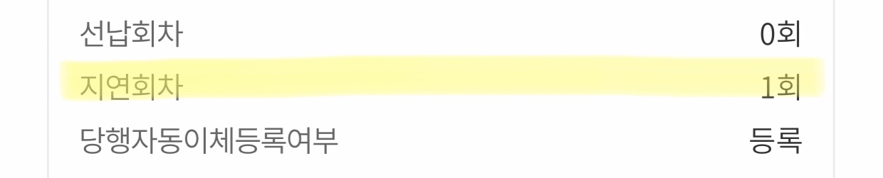 지연회차 1회->0회로 바뀐 걸 볼 수 있다.
