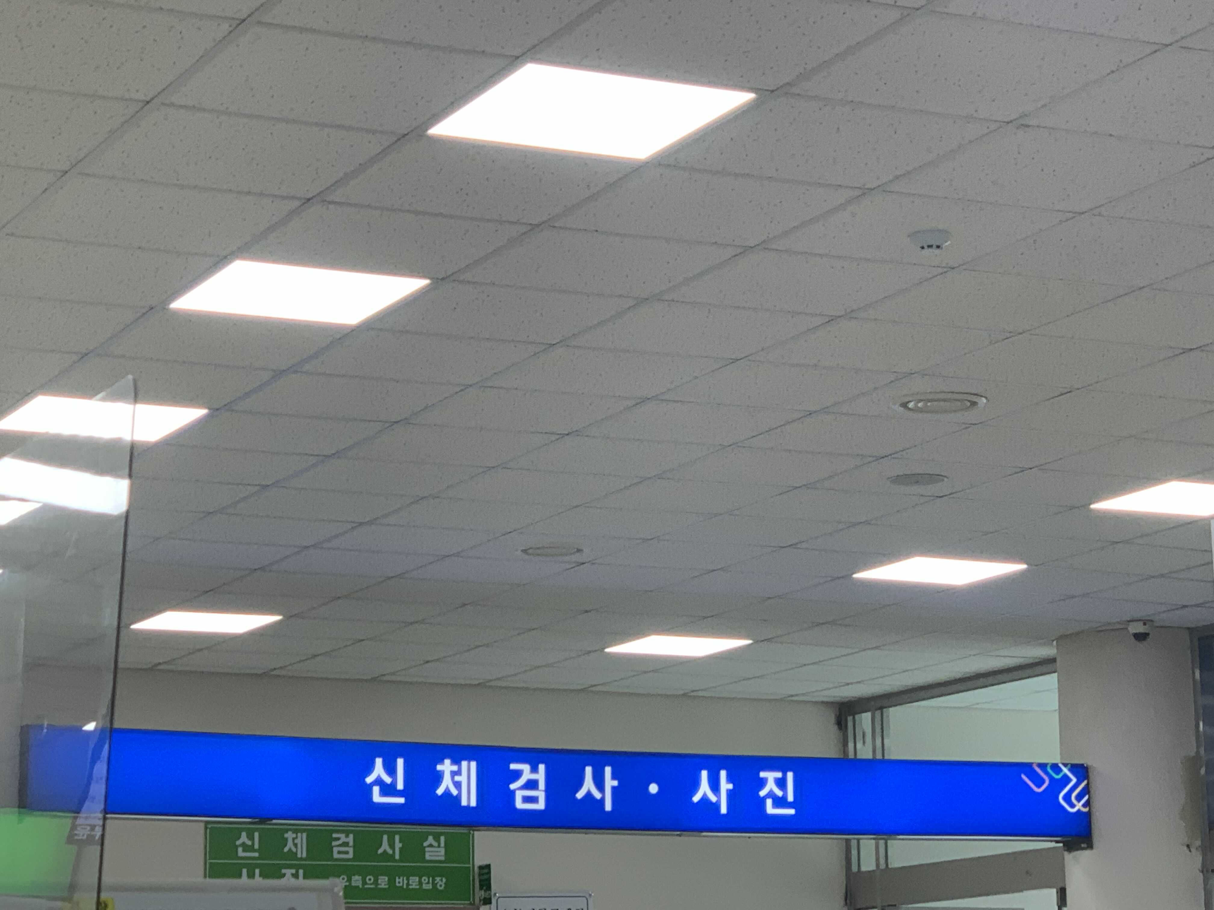 신체검사실로 이동하기 전, 원서를 작성해야 합니다. 다시 1층으로 내려와 안내데스크에 있는 원서 가져가시면 됩니다.