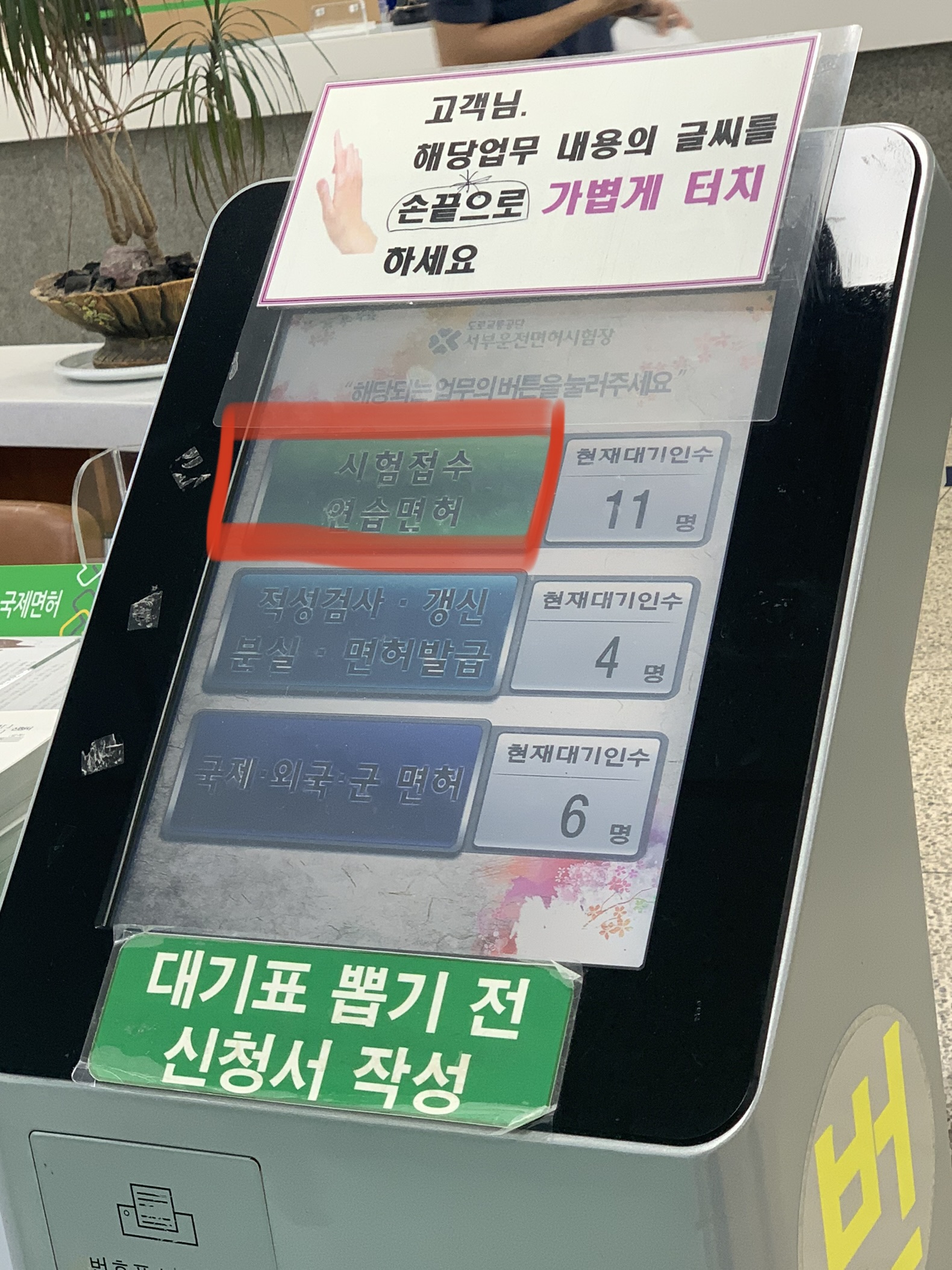 이때가 오전 10시 53분쯤이었는데 저는 학과시험을 오후 1시 반에 예약했습니다. 그래서 혹시 남은 자리 있으면 학과시험 시간 변경할 수 있냐고 여쭤봤더니 남은 자리 있다고 시간 바꿔주겠다고 하셨습니다. 그래서 11:00에 바로 학과 시험 치를 수 있었습니다.