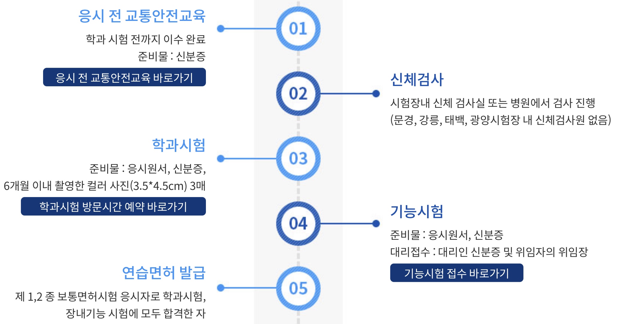 코로나19 4단계로 인해 응시 전 교통안전 교육 및 학과시험(필기시험) 모두 온라인 사전 예약이 필요합니다. 현장 접수는 불가합니다.