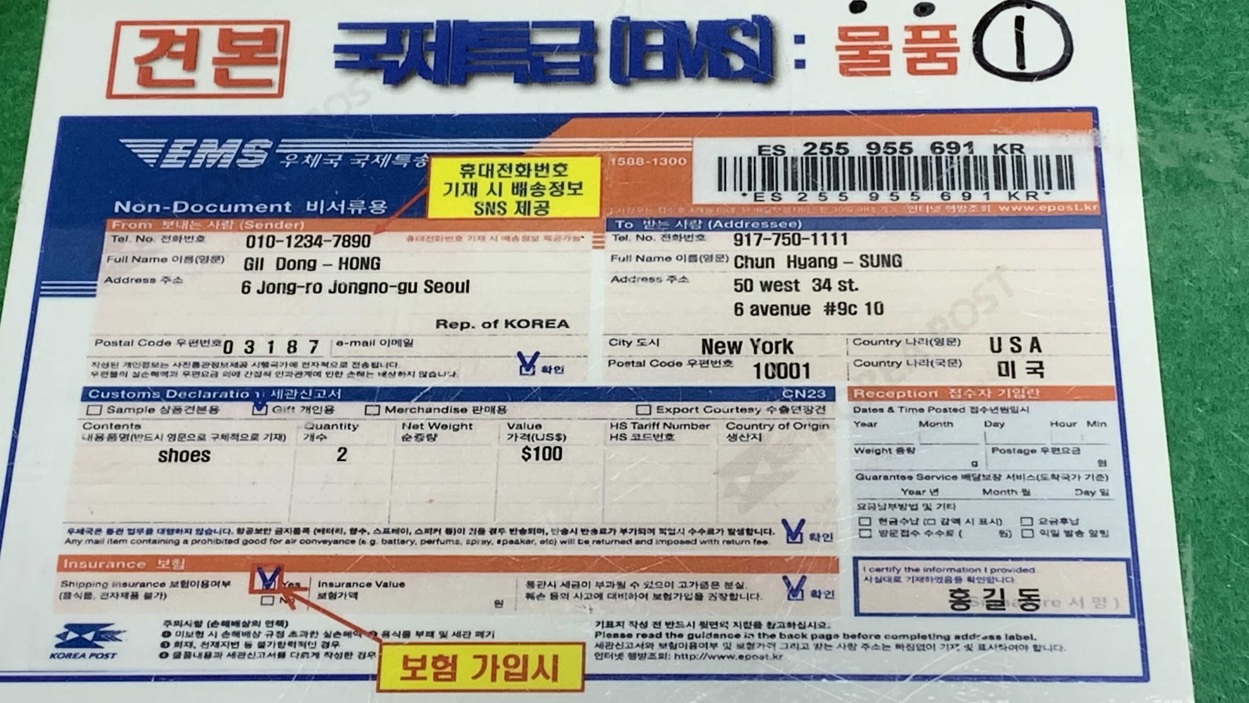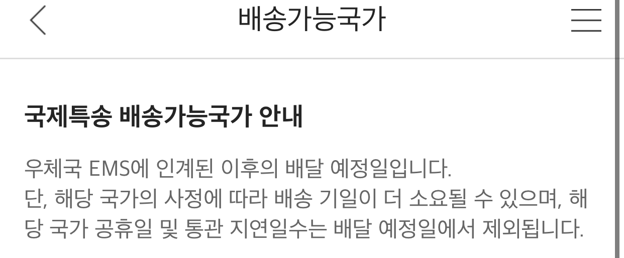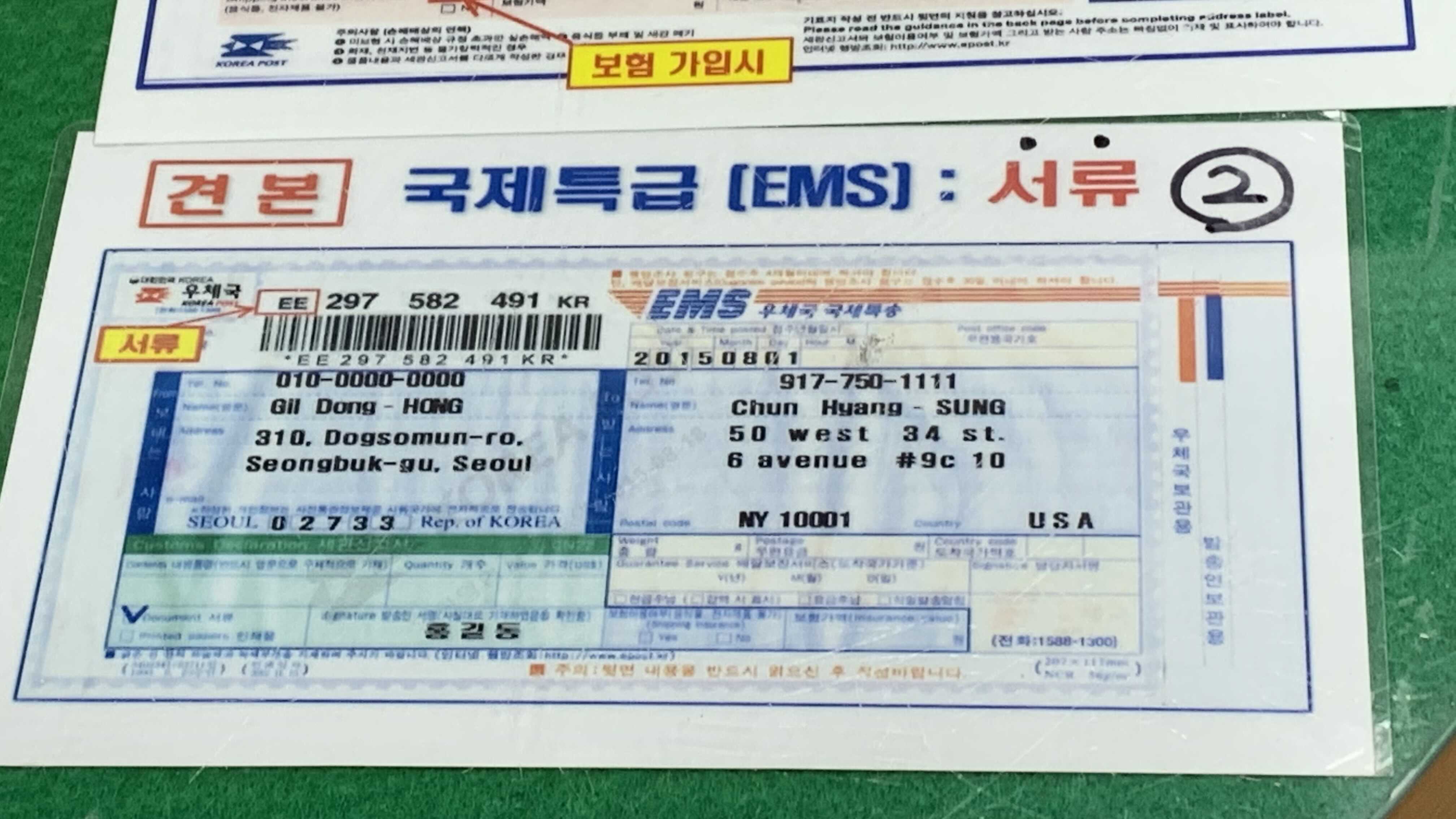 - EMS 접수처: 우체국, 편의점(CU, GS25)