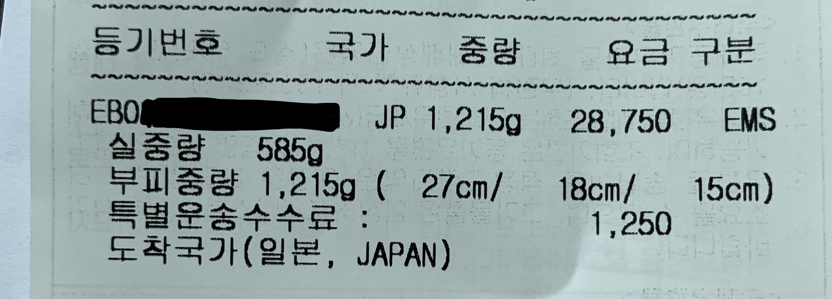 • EMS 요금: 27,370원 (온라인 접수로 인한 1,380원 할인 적용된 가격입니다.)