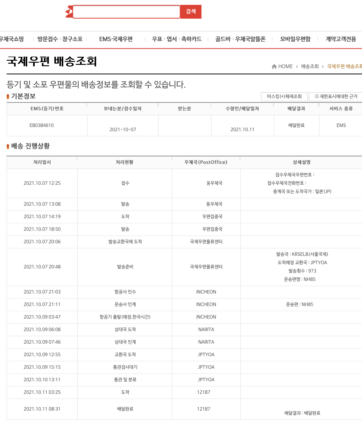• EMS 등기번호 조회: https://service.epost.go.kr/trace.RetrieveEmsRigiTrace.comm#