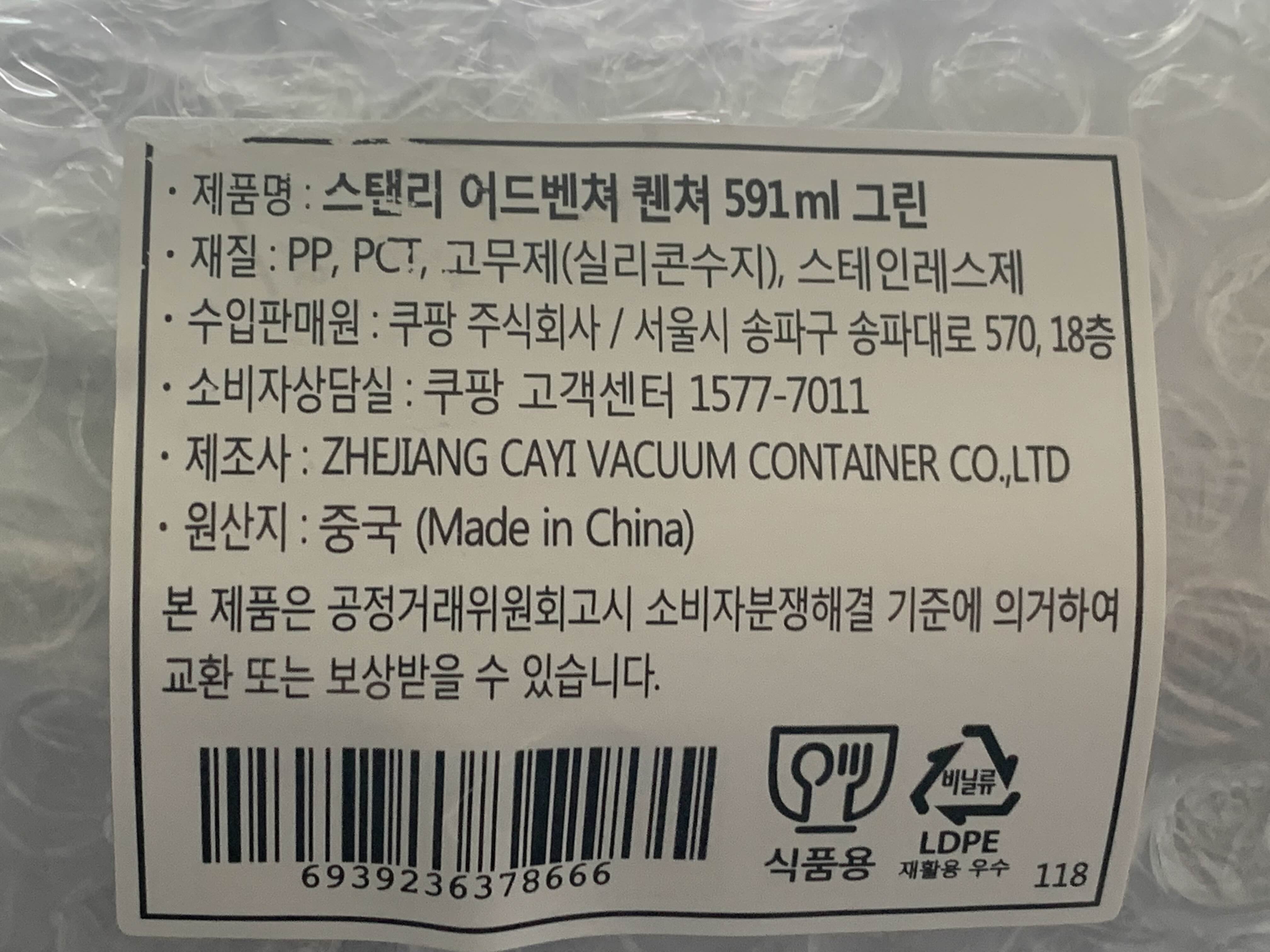 구매한 스탠리 상품명 ‘어드벤처 퀜쳐 텀블러 591ml’