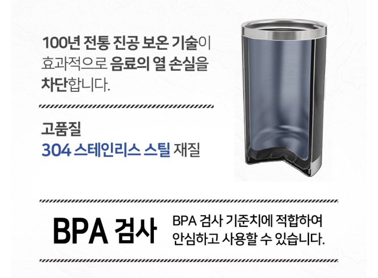 스테인리스 스틸 재질이라서 인체에 무해하며, 명성답게 보온, 보냉 기능이 확실하다. 여름에 냉수 마실 때 특히 유용할 것 같다.