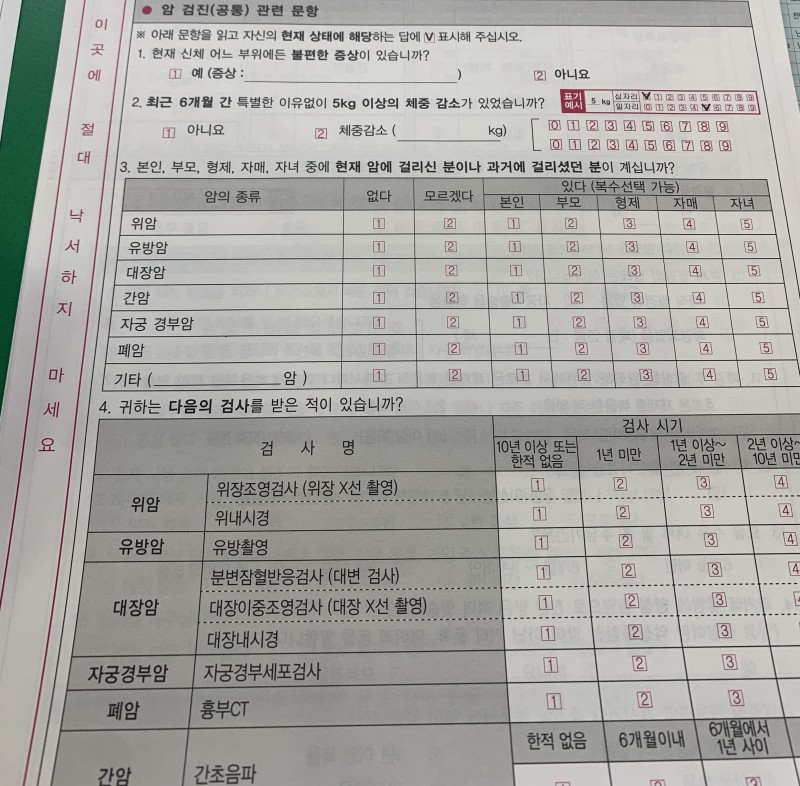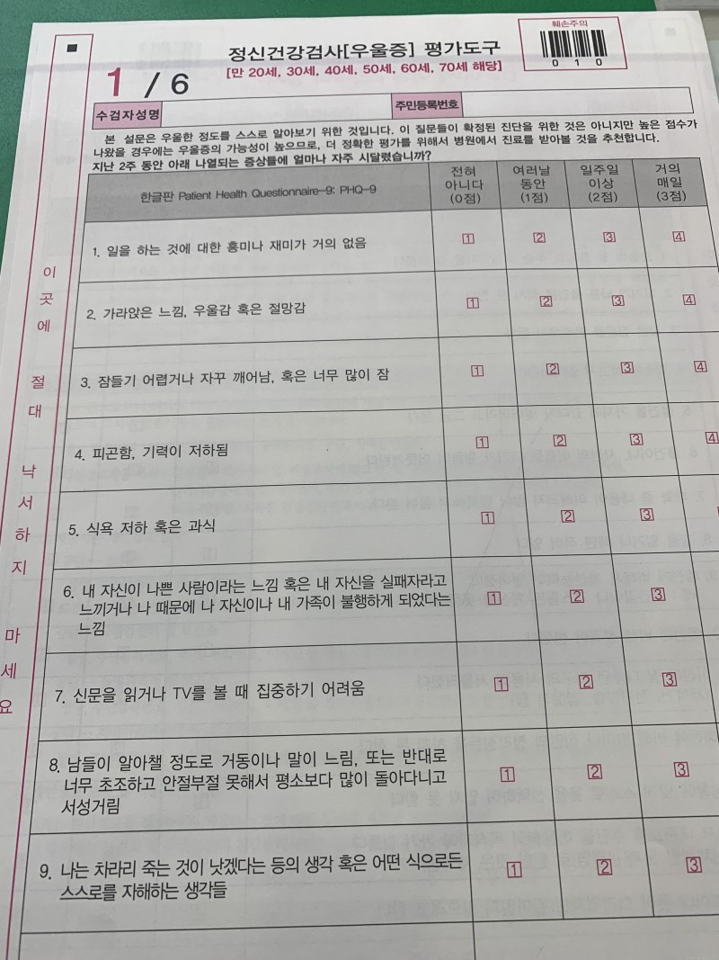 2년전 받았을 땐 없었던 것 같은데 이번엔 정신검사 우울증 평가 항목도 있더라구요.