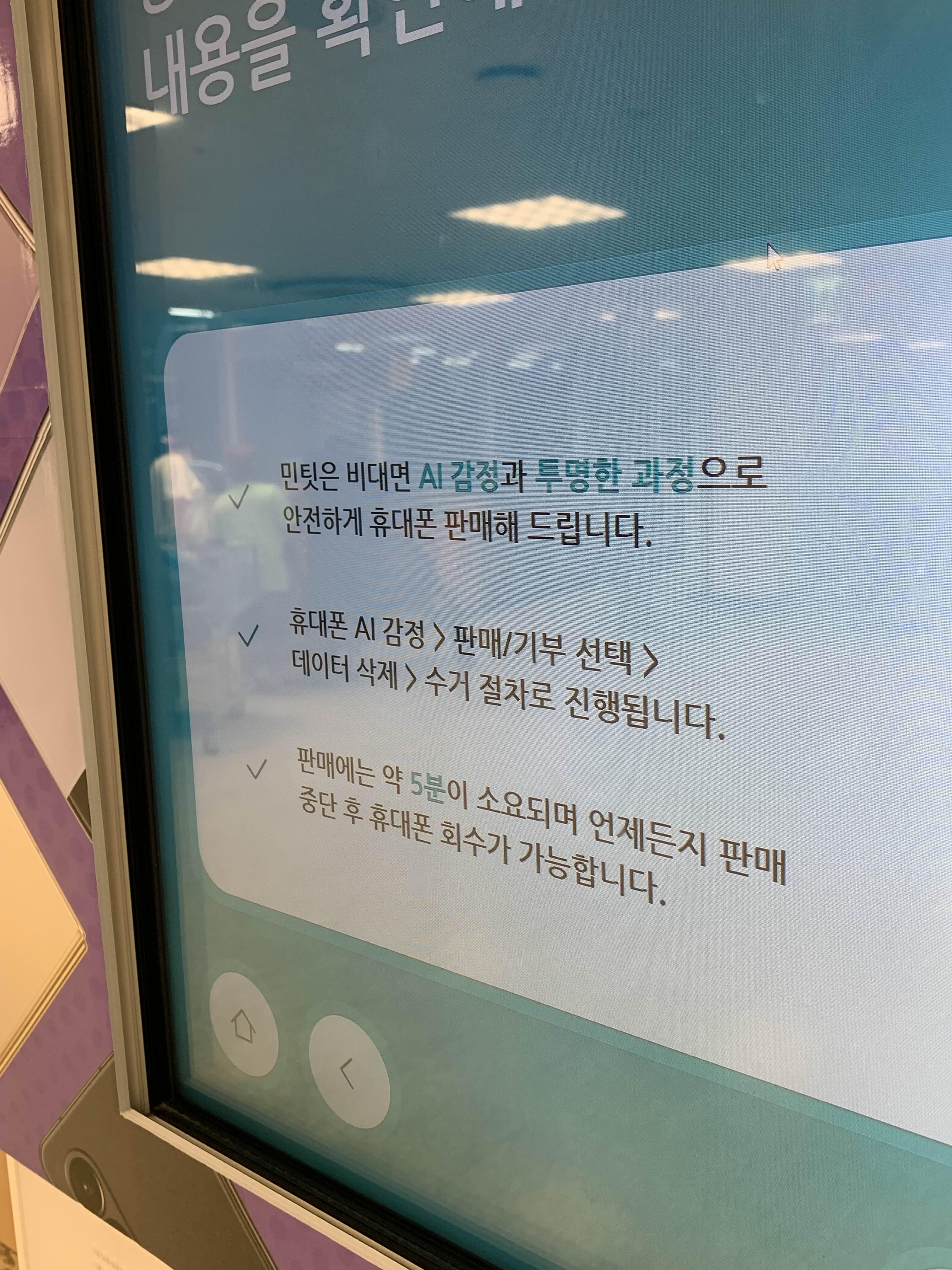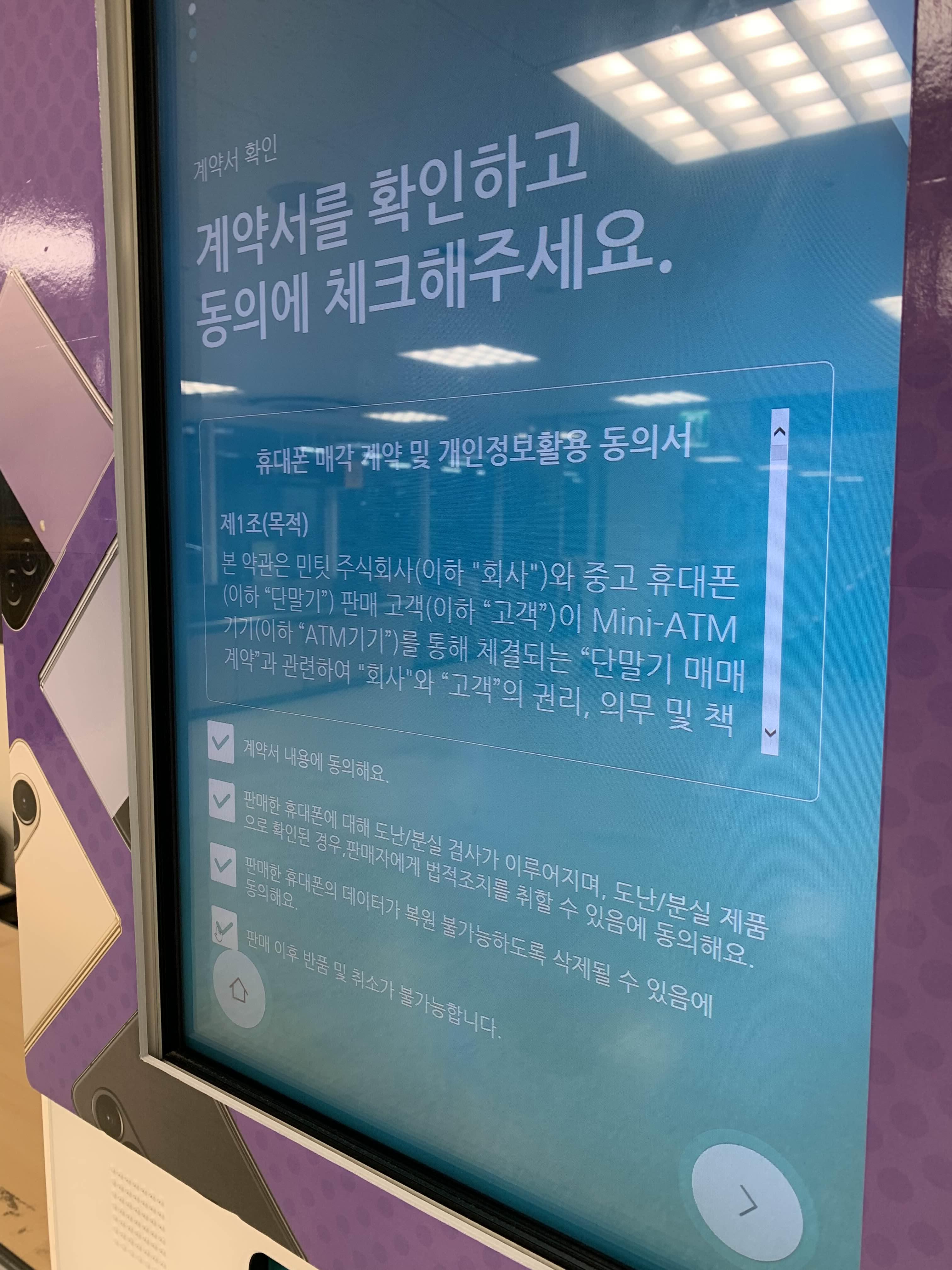 가기 전 민팃 어플을 핸드폰에 다운받아서 미리 이런 저런 정보 등록해둘 수도 있는데, 저는 번거로워서 어플 설치 전혀 하지 않고 현장에서 민팃 ATM 기계가 하라는대로 절차 밟아 진행했습니다.