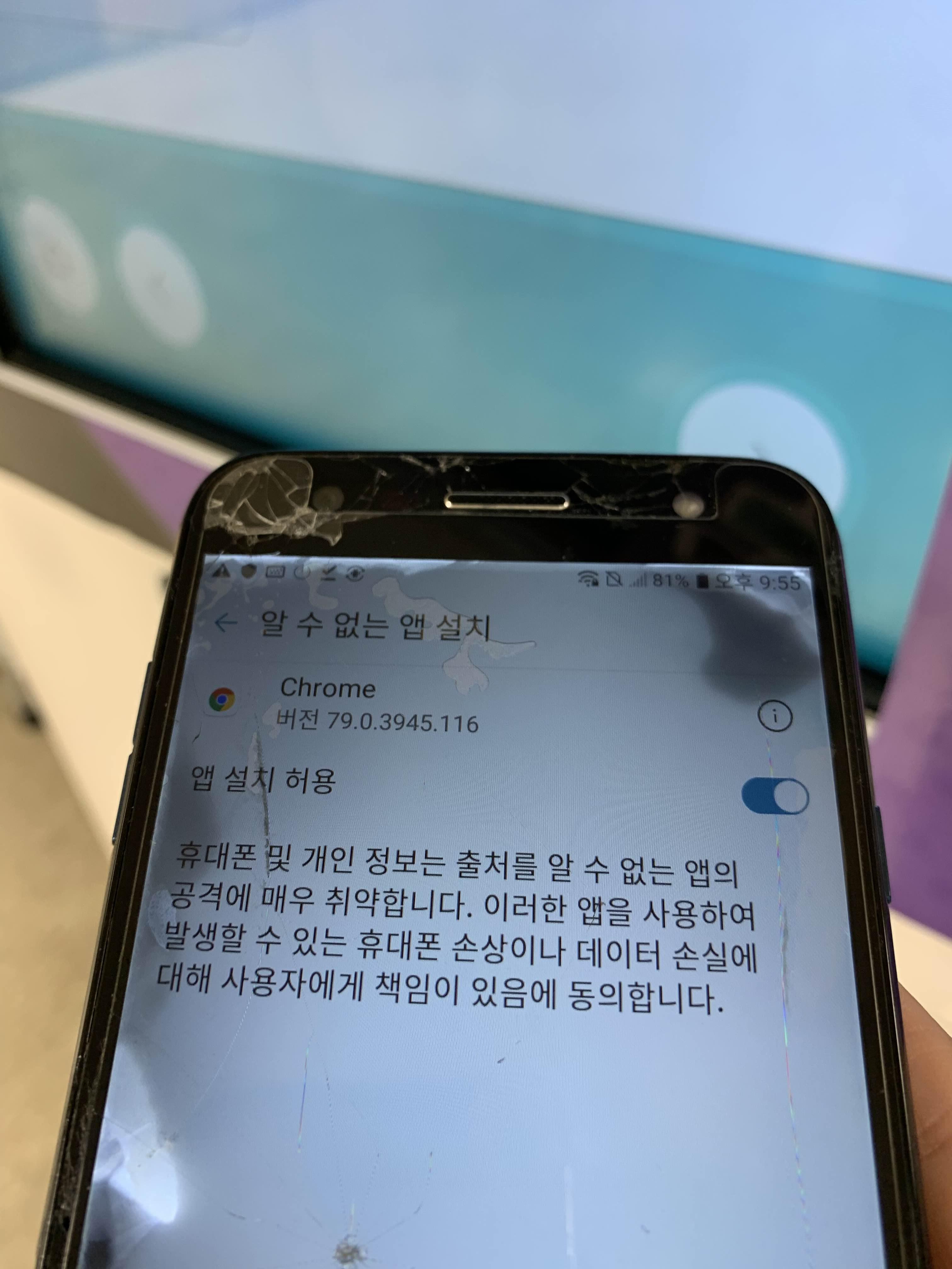 보안상의 이유로 앱 설치가 불가능하다고 뜨기에,