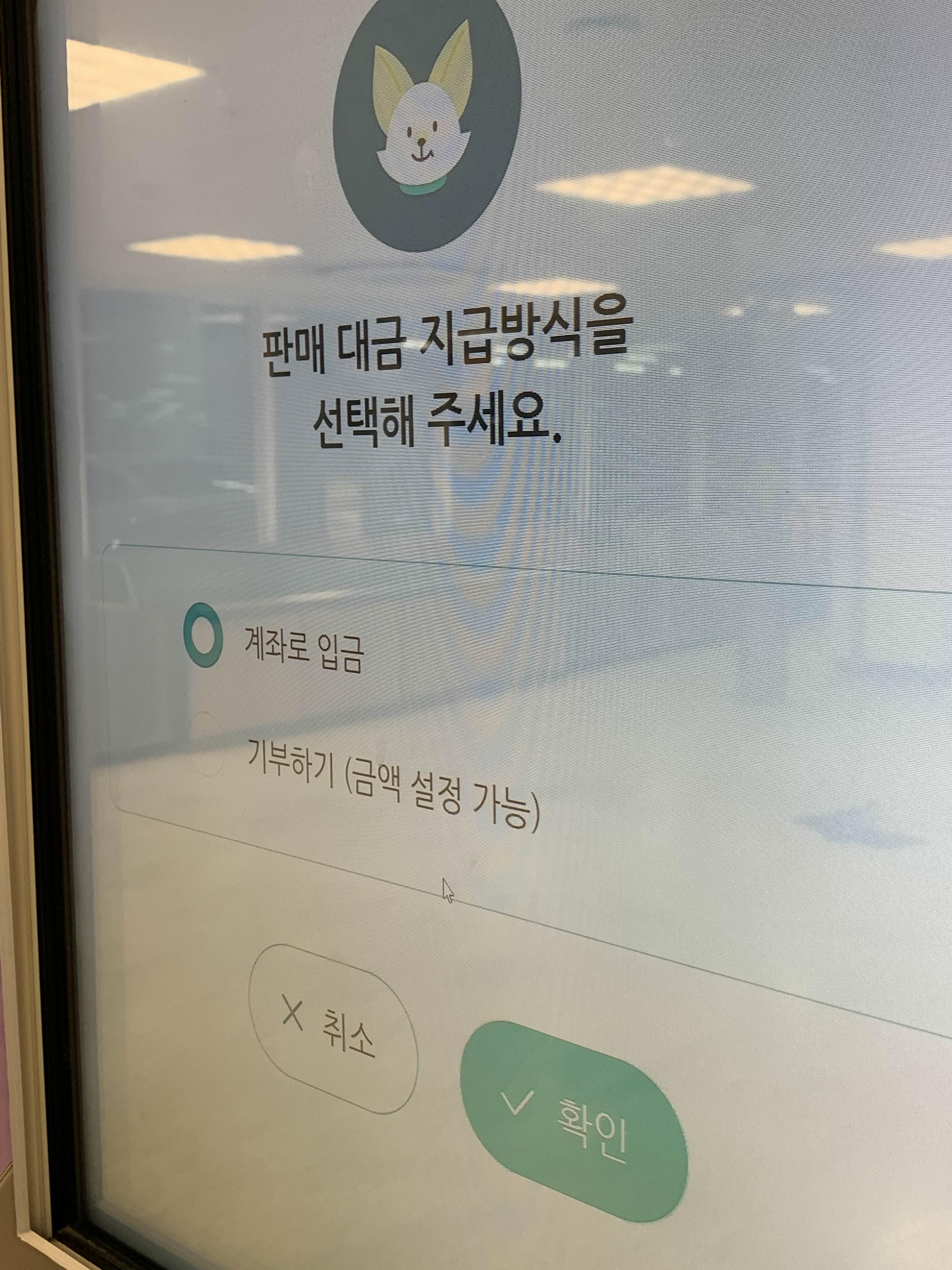 판매 대금 지급 방식 선택. 계좌로 입금 또는 기부하기 선택 가능합니다.