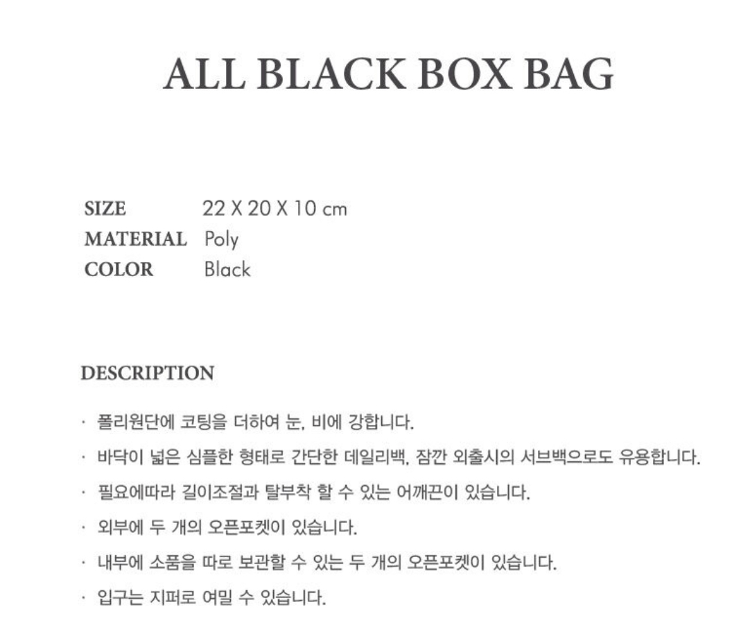 그렇게 여러 가방을 찾다가 크로스, 숄더, 토트 전부 가능한 아이띵소 올블랙 박스백을 발견하게 되었다.