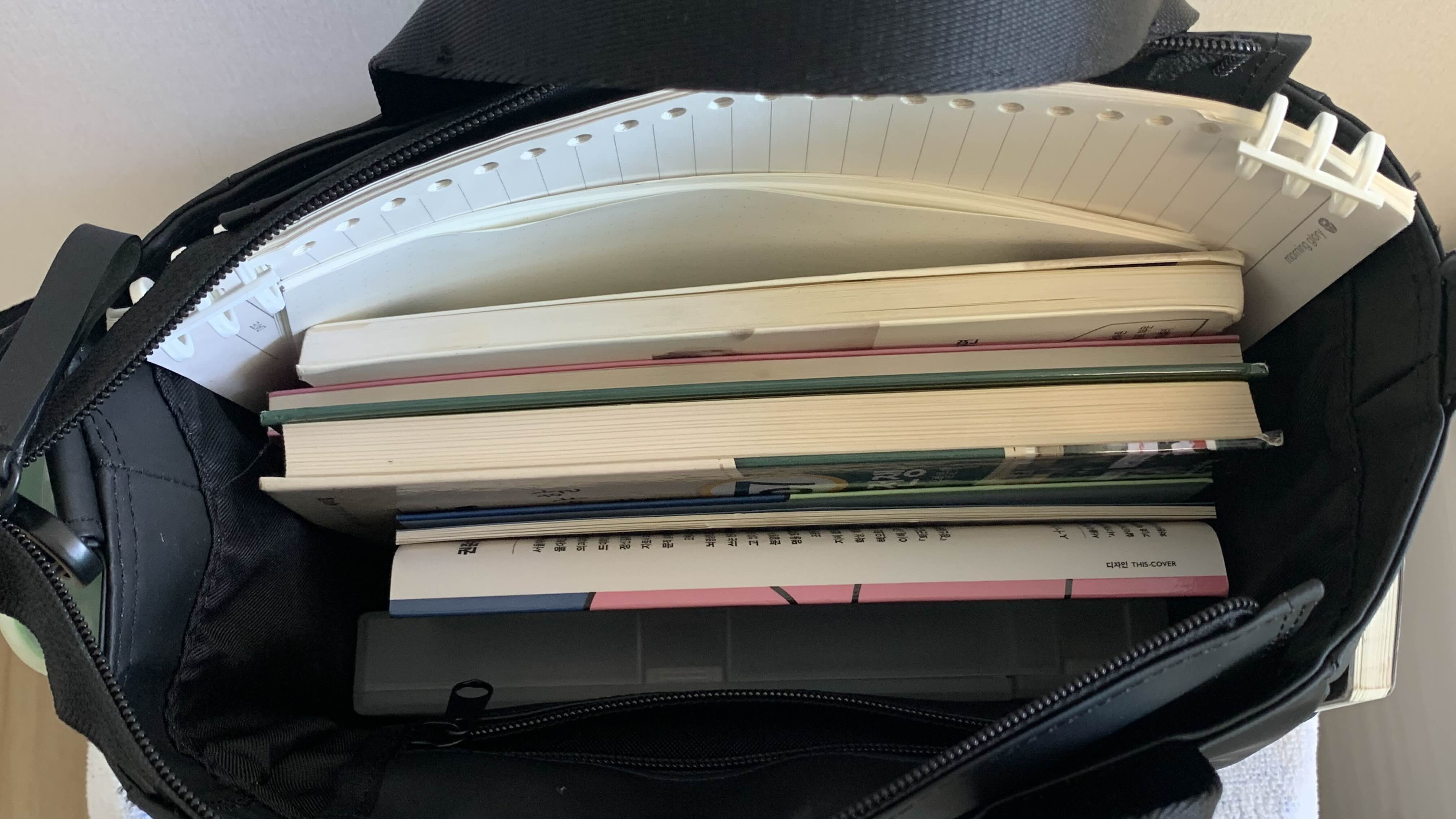 A4 파일 서류는 안 들어가지만 노트(B5 사이즈)는 수납 가능하다.