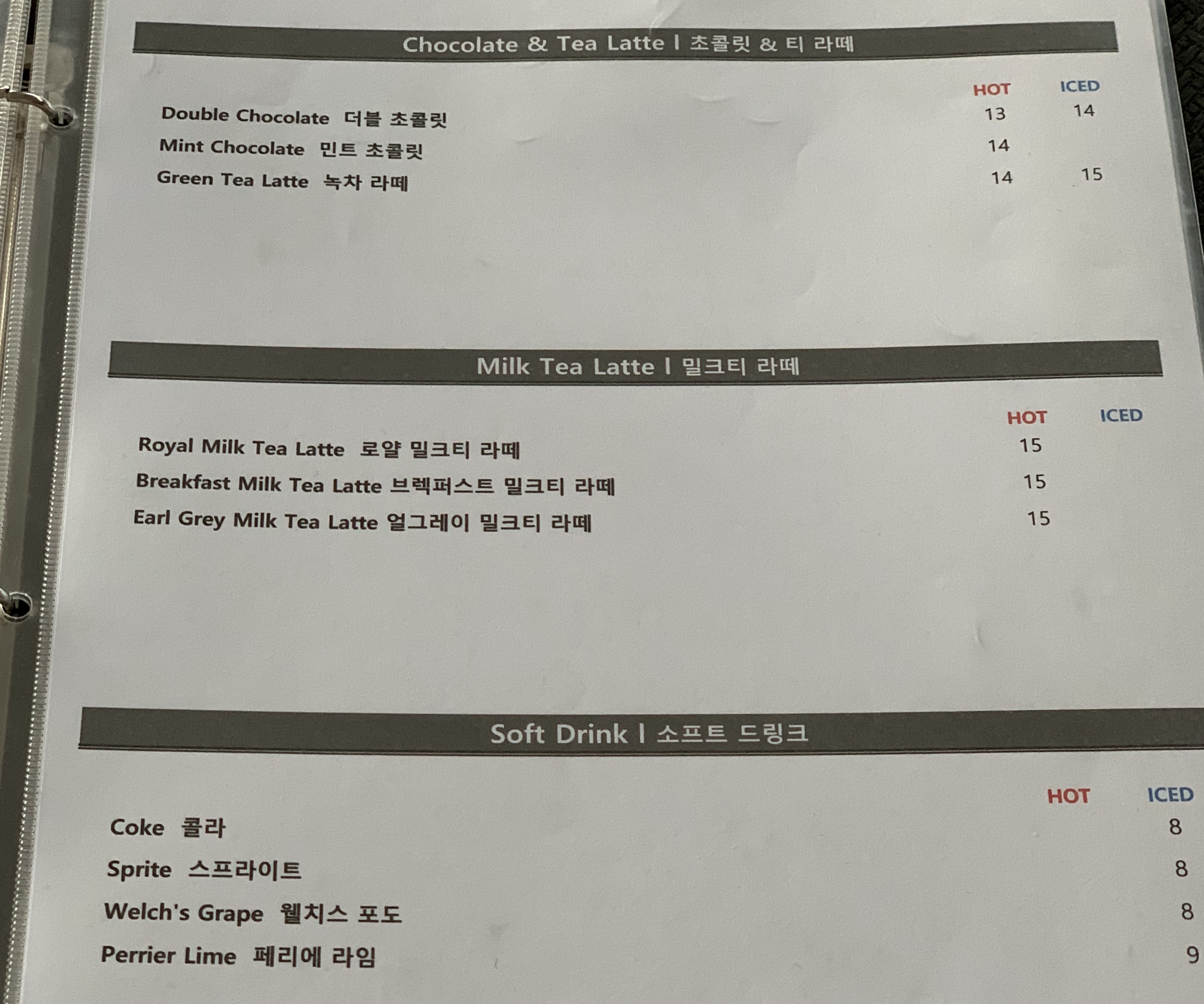 메뉴판은 맨 밑에 첨부하겠습니다.