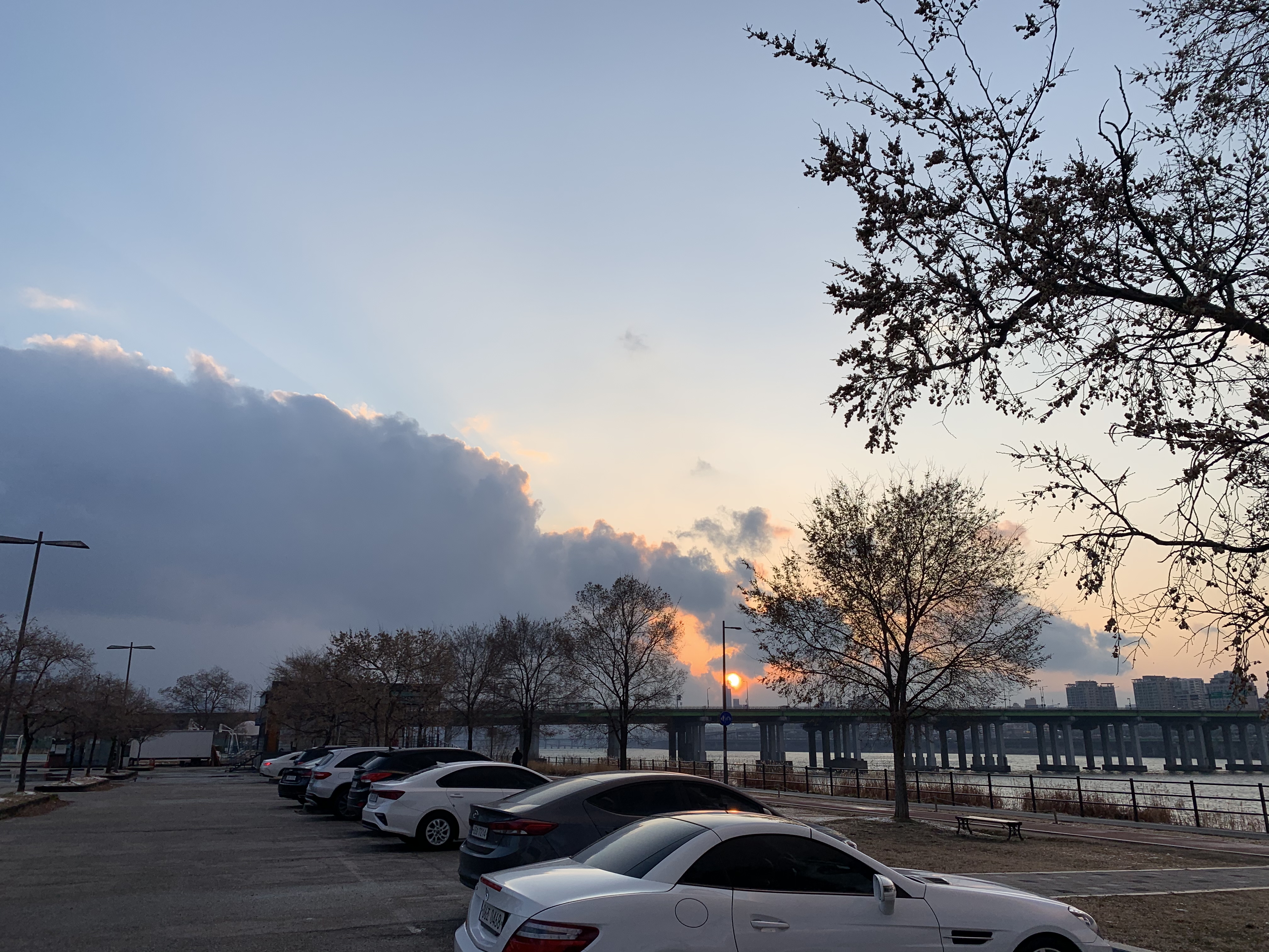 원래 한강 산책하려 했는데 너무 추워서 그냥 차타고 집으로