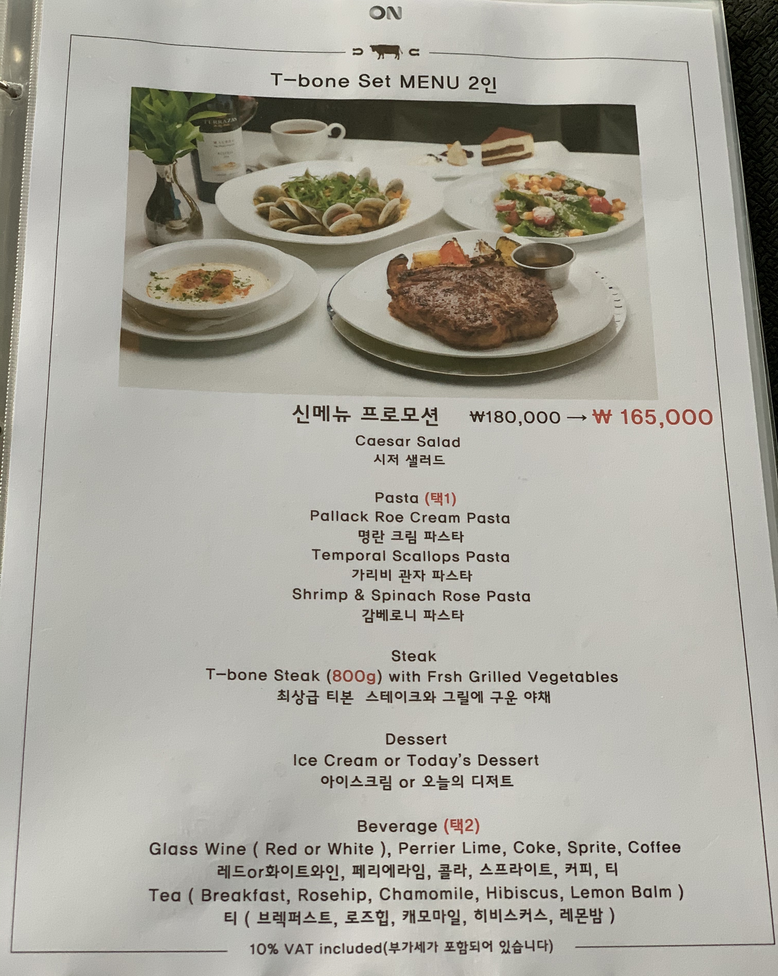 그땐 두명이서 가서 스테이크가 먹고 싶으면 2인 프리미엄 세트 아니면 명란 크림 파스타, 피자, 비프 샐러드 이렇게 시켜먹어 봐야지.